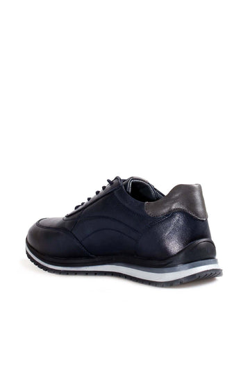 Gri Desenli Lacivert Erkek Günlük Deri Spor Ayakkabı - Wessi