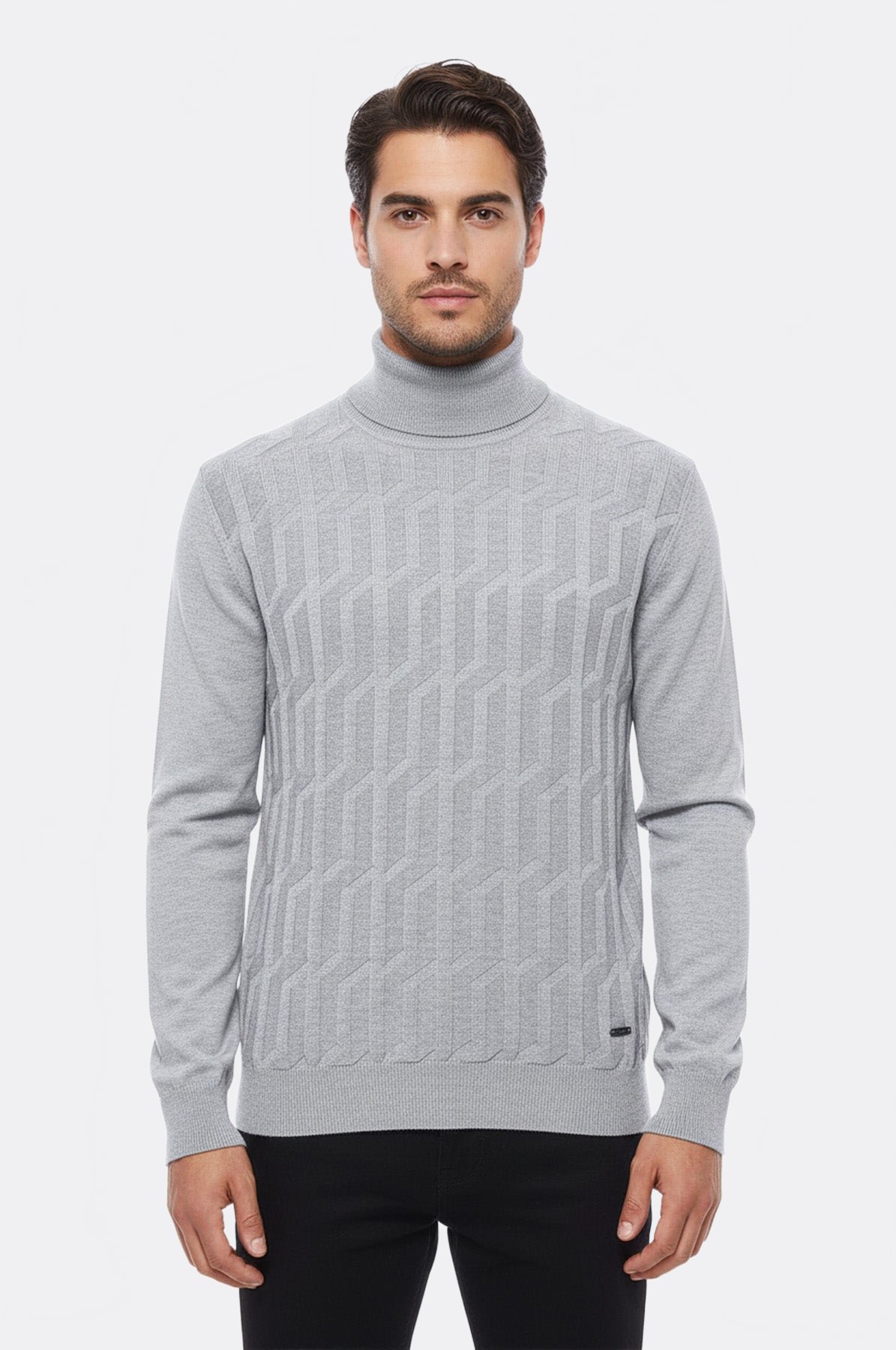 Gri Desenli Yarım Balıkçı Yaka Triko - Wessi