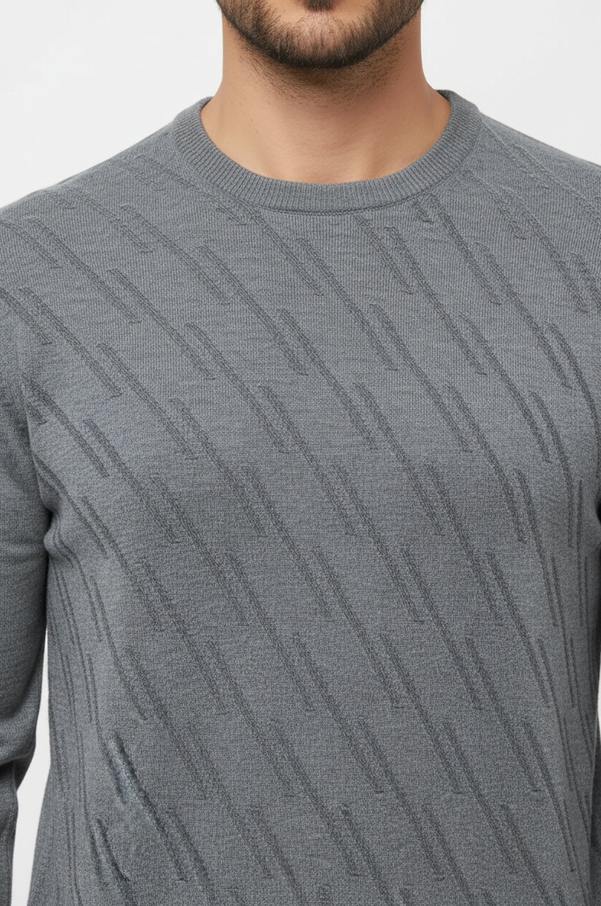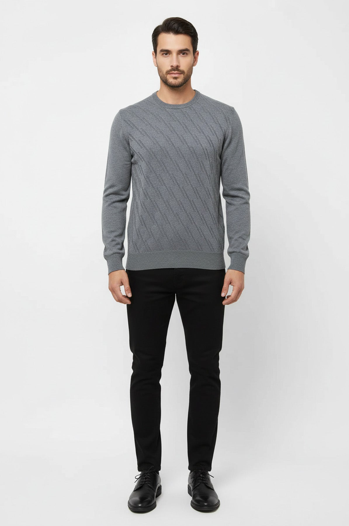 Gri Kendinden Desenli Bisiklet Yaka Kazak - Wessi