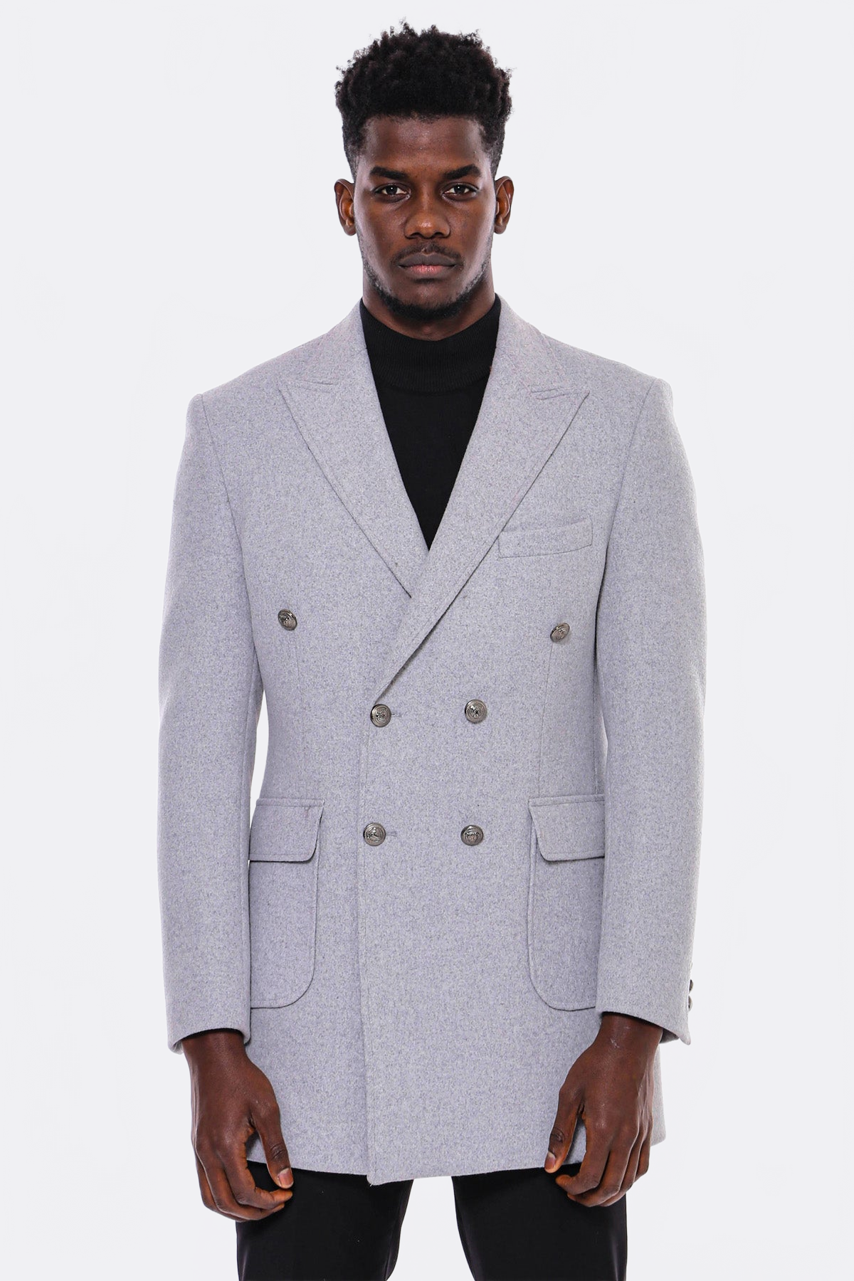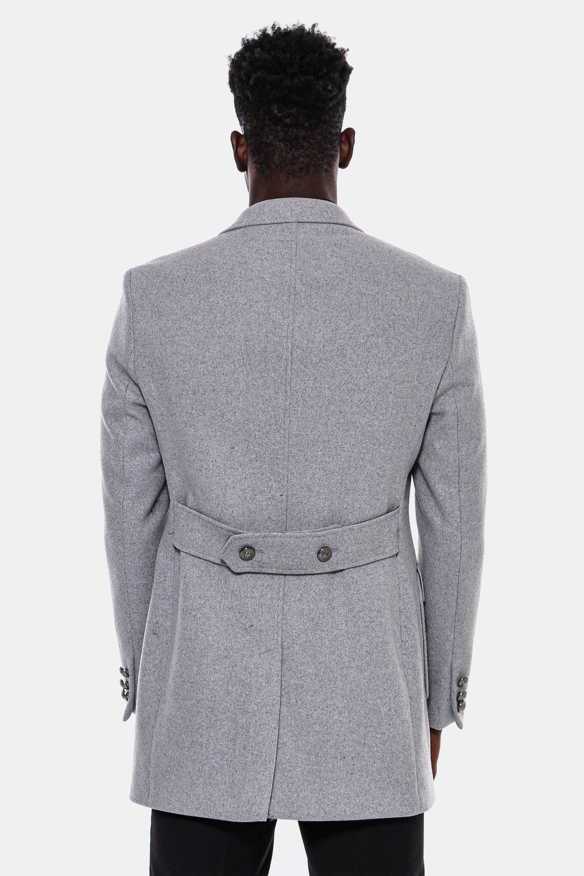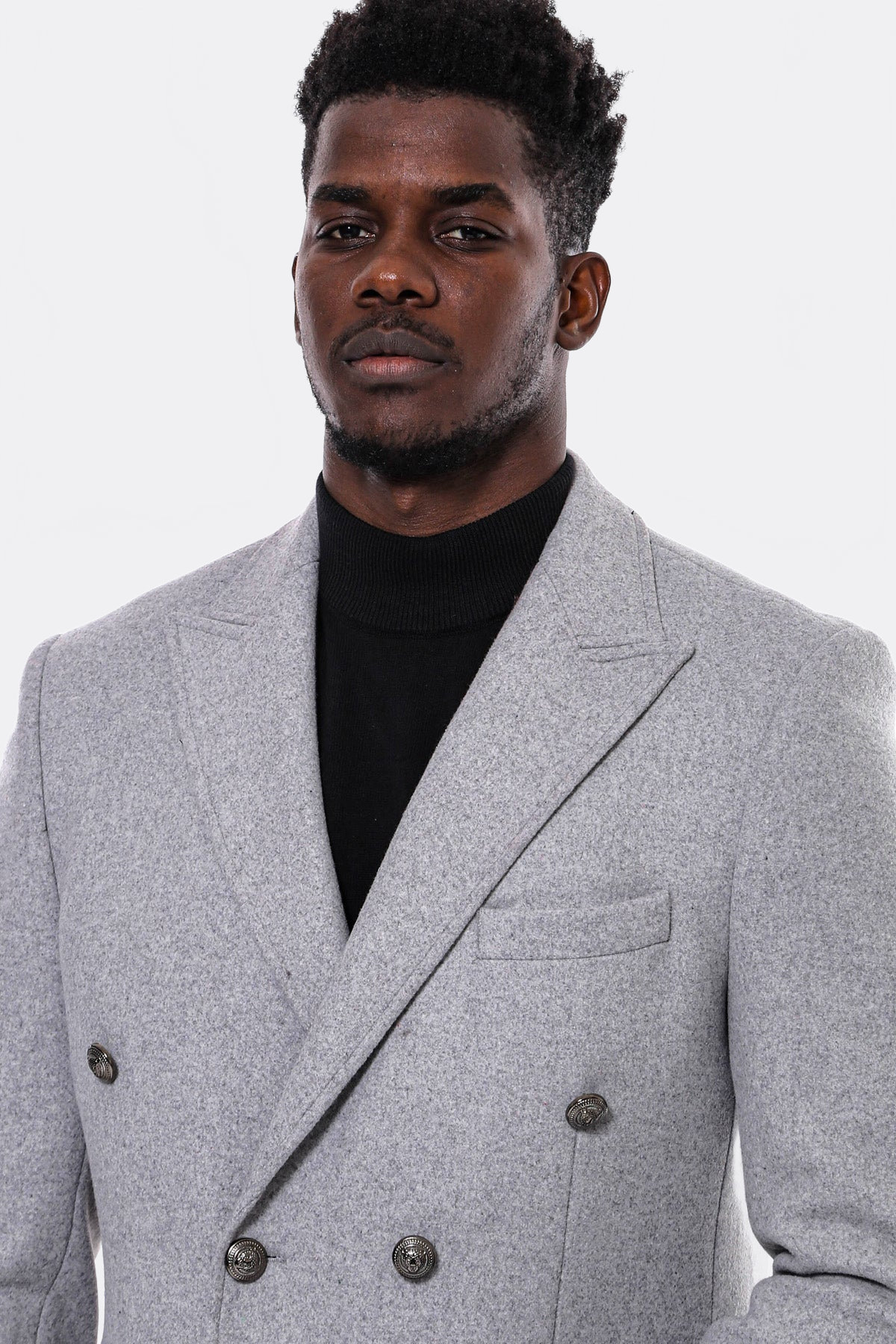 Gri Metal Düğmeli Kruvaze Kaban - Wessi