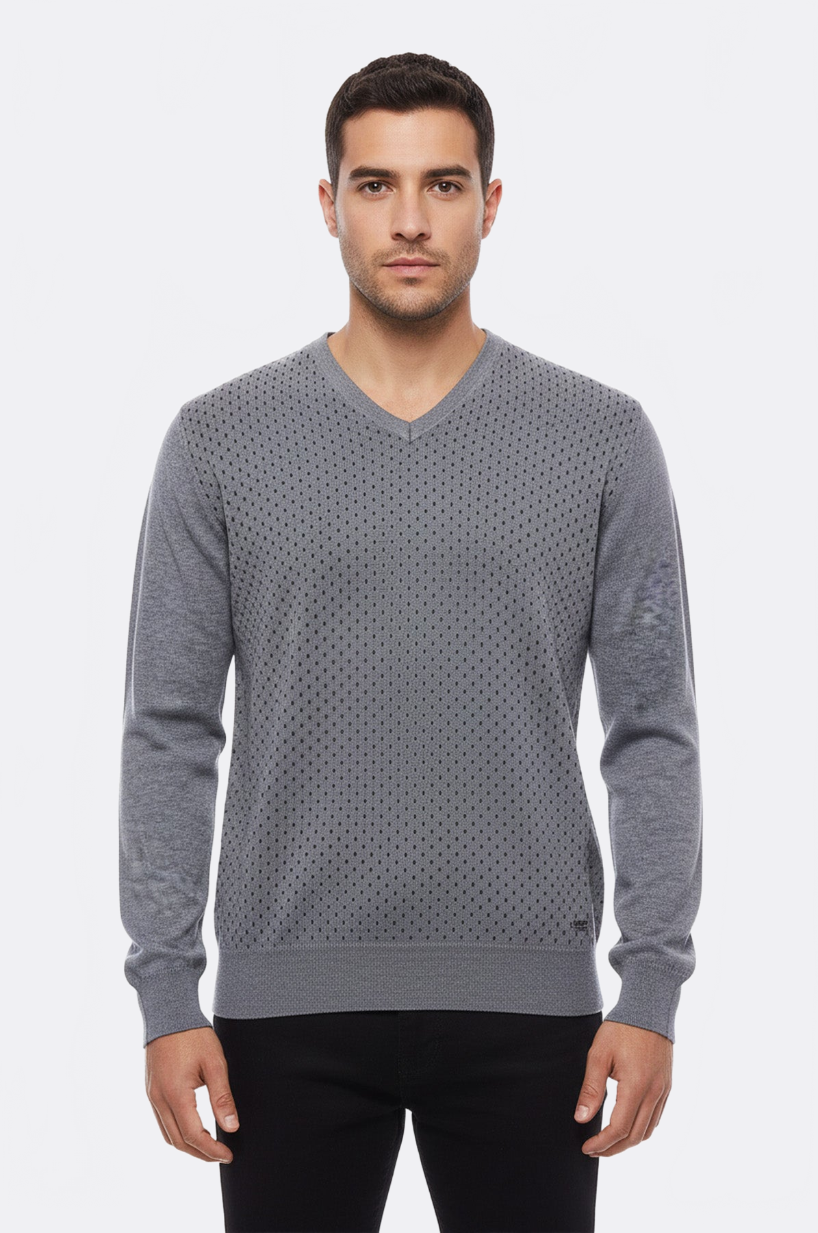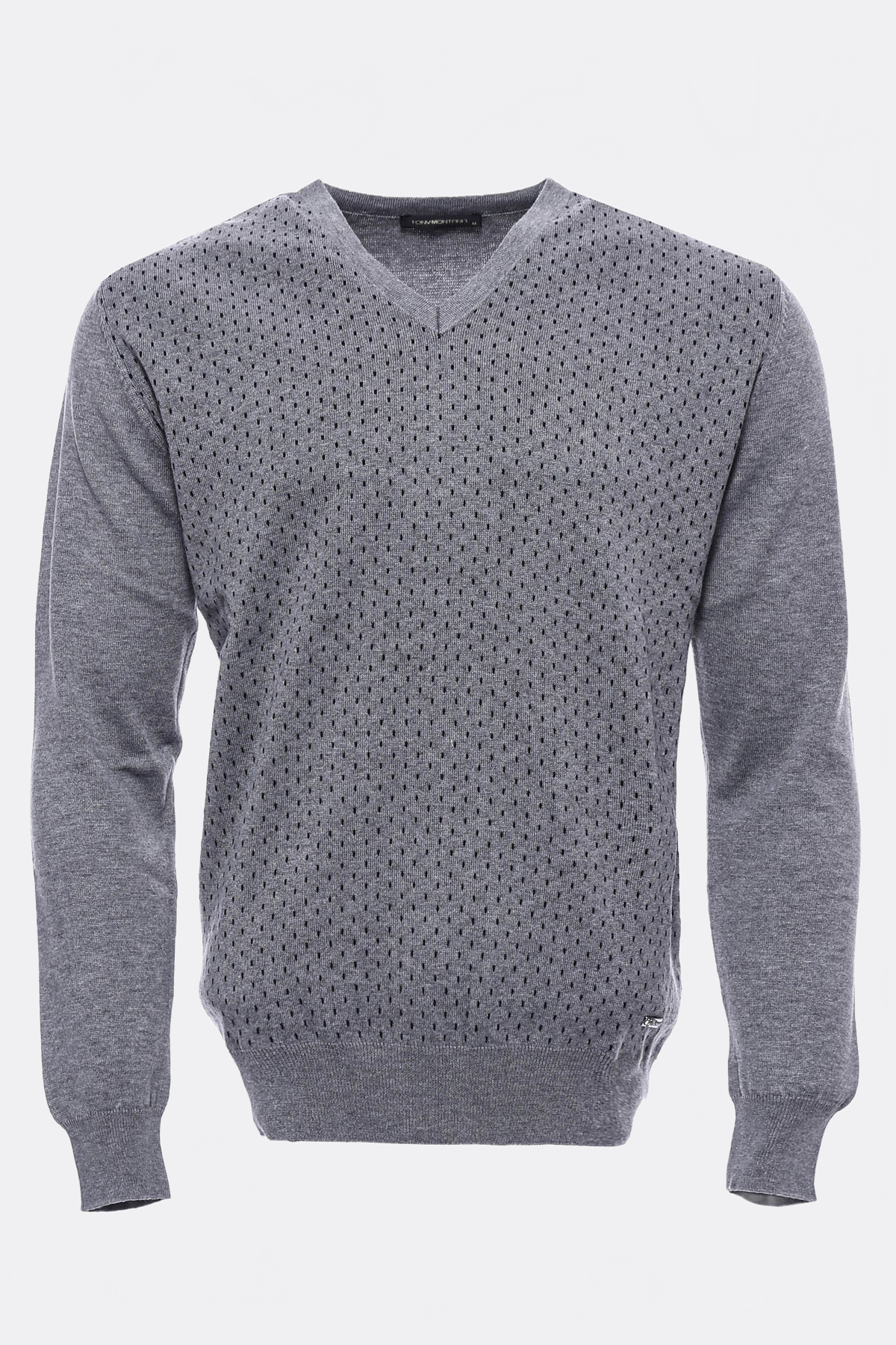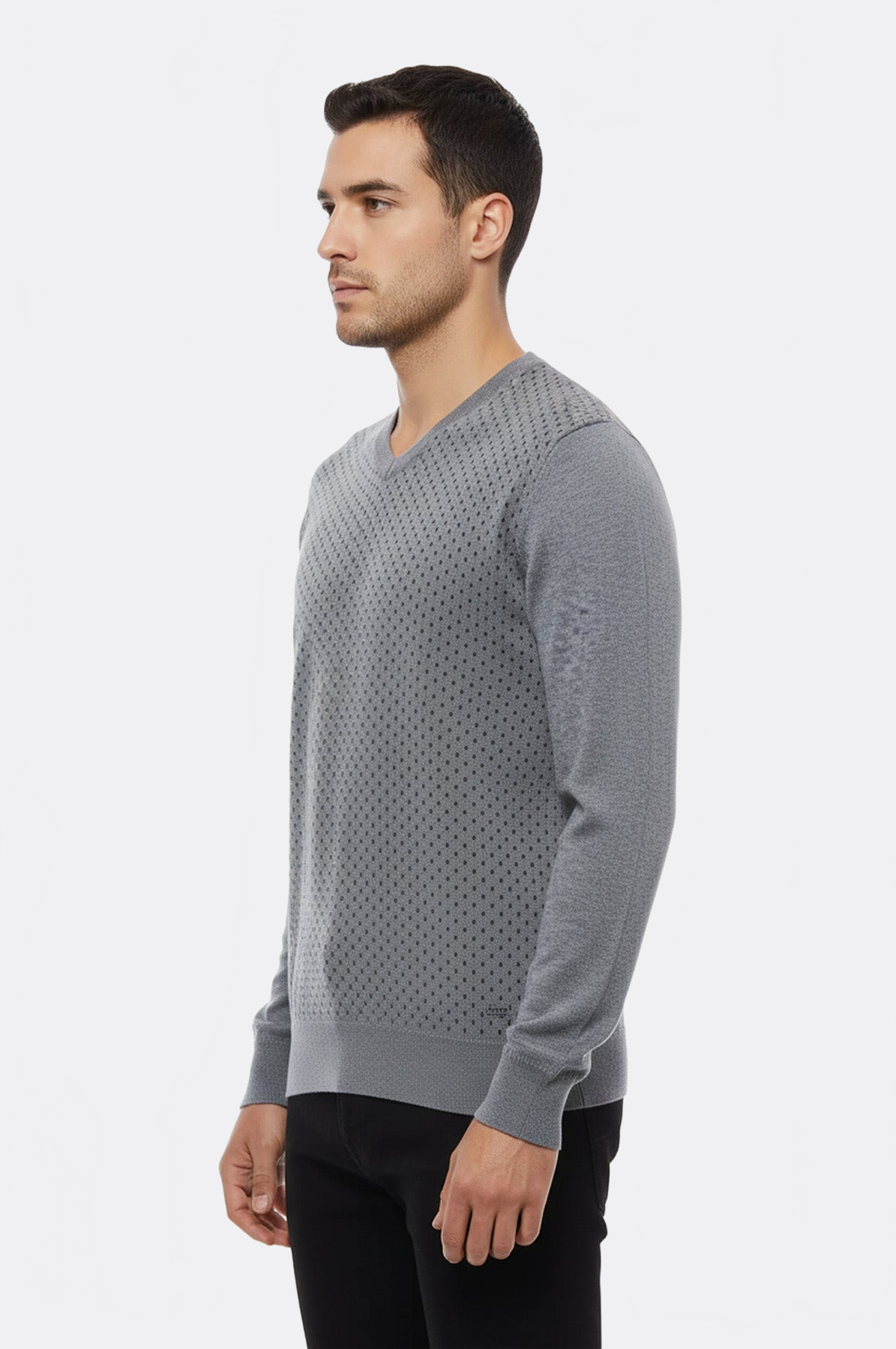 Gri Nokta Desenli V Yaka Triko - Wessi