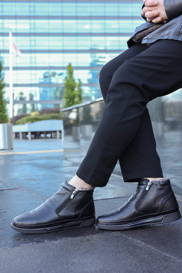 Hakiki Deri Kürklü Erkek Spor Bot 724KMA22 Siyah - Wessi