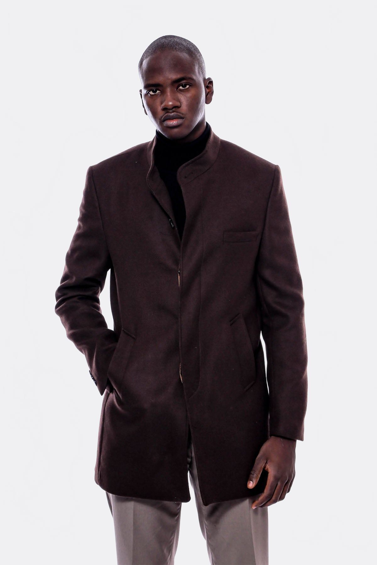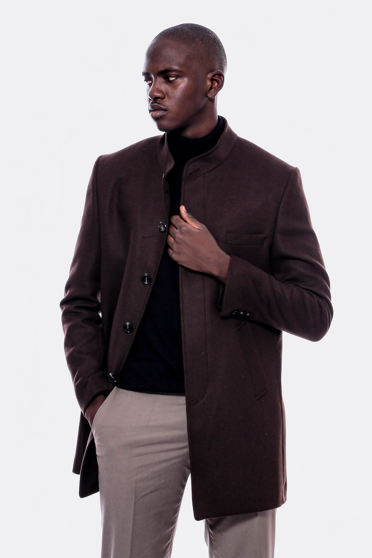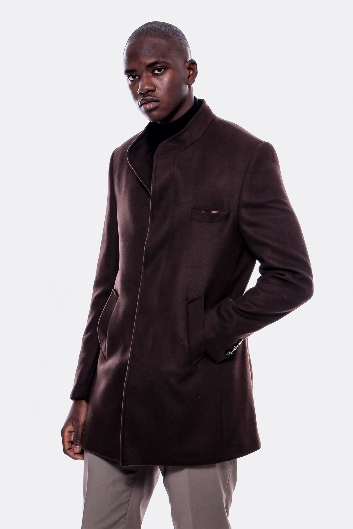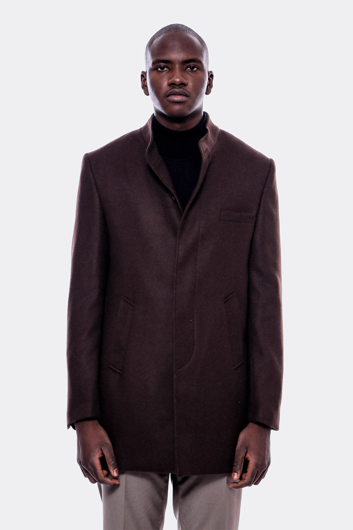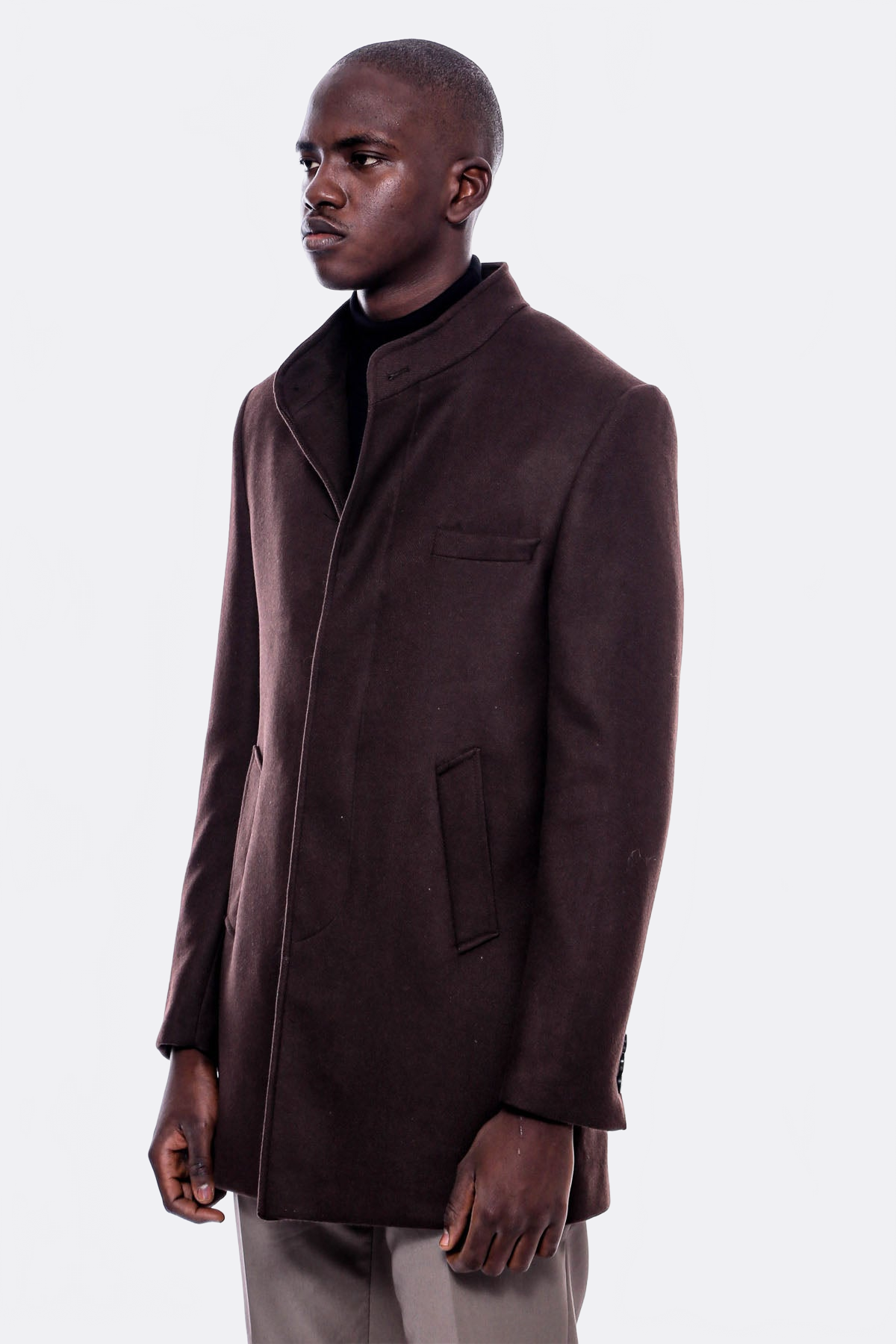 Hakim Yaka Kahverengi Kaşe Kaban
