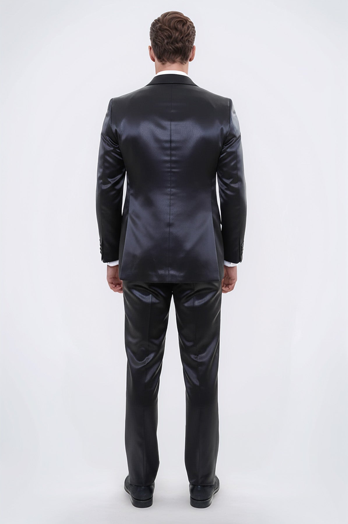 İki Parça İki Düğmeli Desenli Yaka Saten Siyah Erkek Damatlık - Wessi
