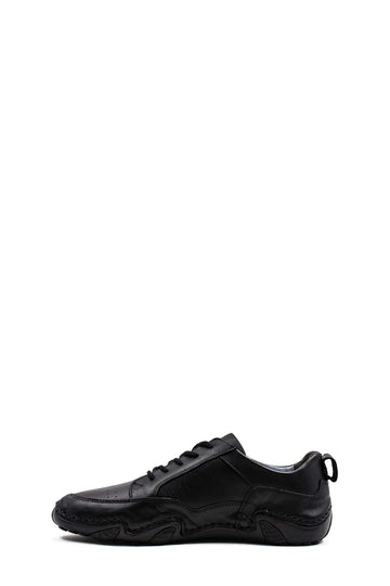 Kabartma Detaylı Siyah Deri Erkek Günlük Ayakkabı - Wessi