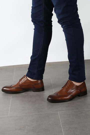 Kahverengi Deri Delikli Desenli Oxford Ayakkabı - Wessi"