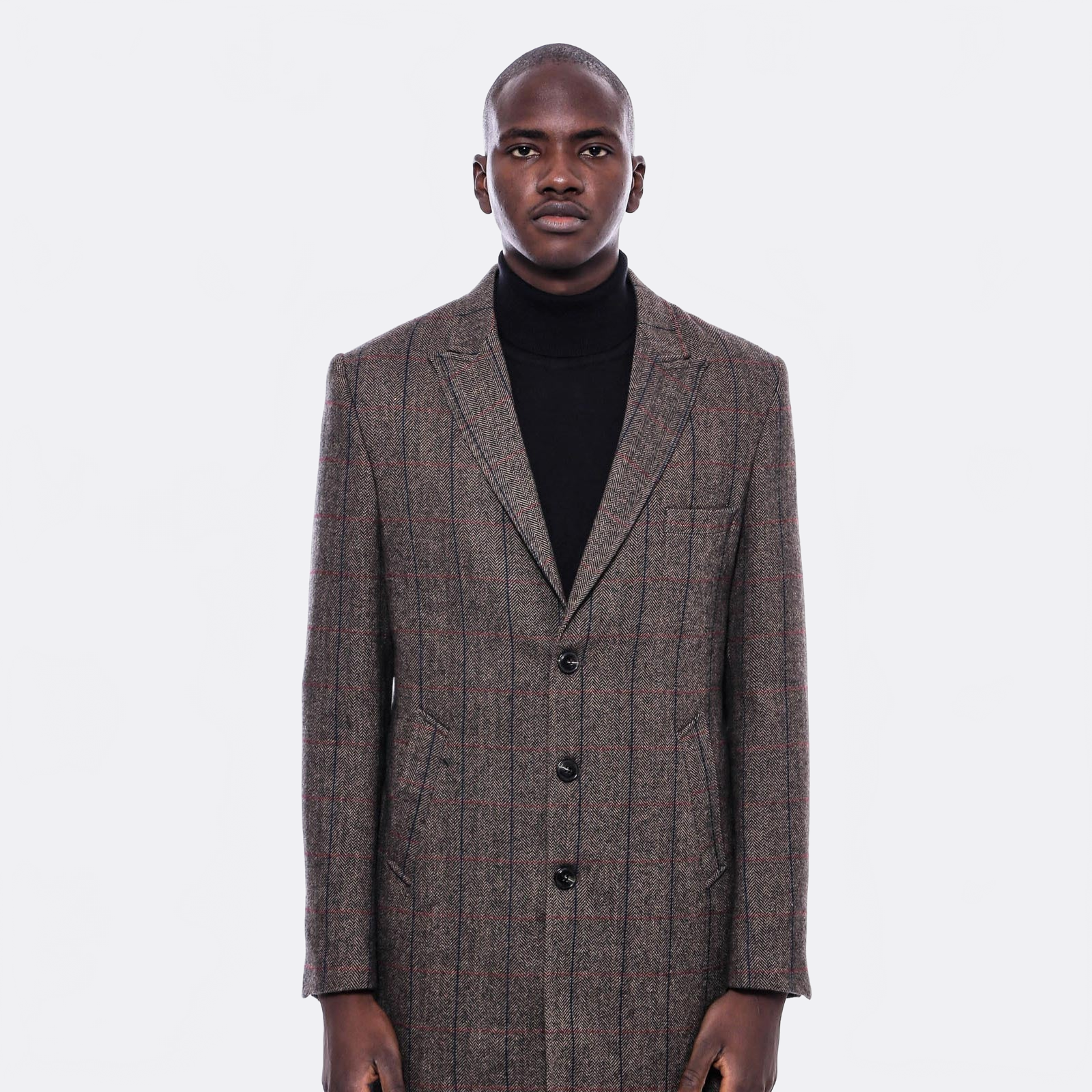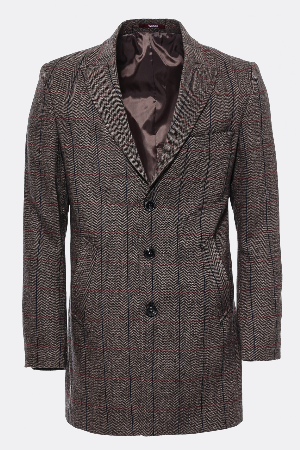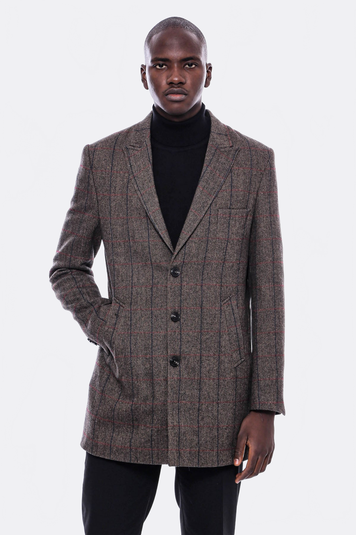 Kahverengi Lacivert Bordo Çizgili Sivri Yaka Slimfit Kaban - Wessi