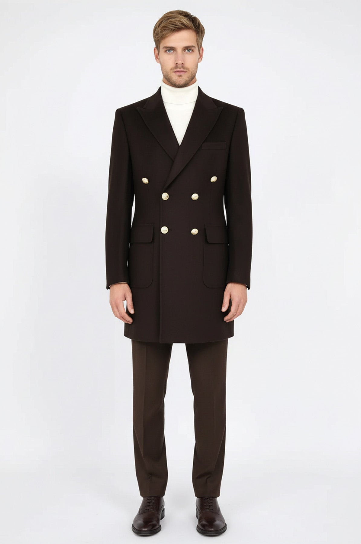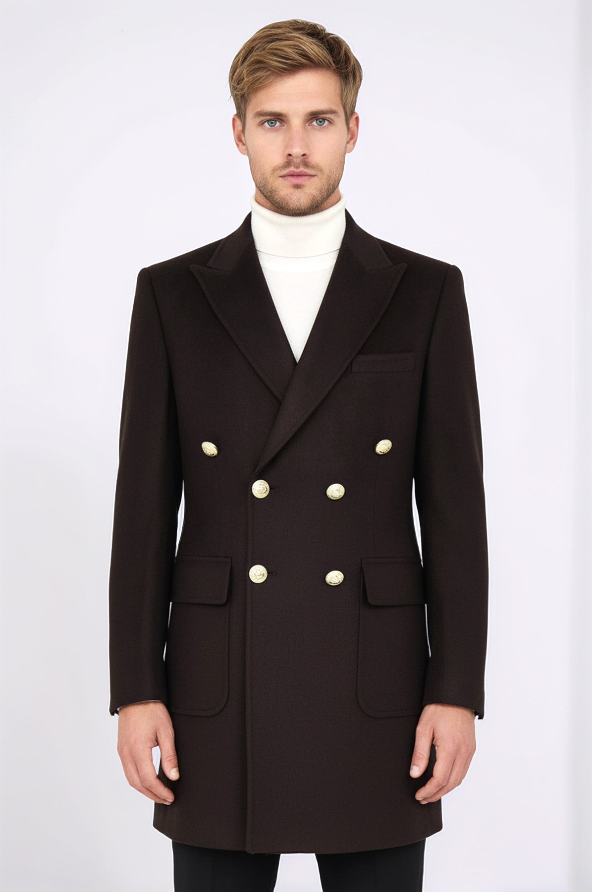 Kahverengi Metal Düğmeli Kruvaze Kaban - Wessi