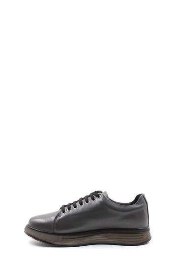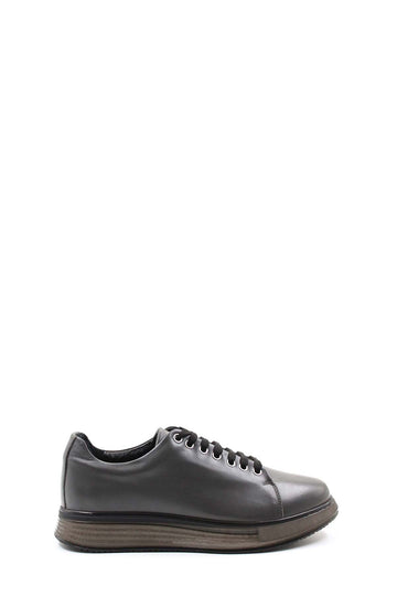Kalın Tabanlı Metalik Gri Deri Erkek Spor Ayakkabı - Wessi
