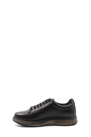 Kalın Tabanlı ve Bağcıklı Şık Tasarımlı Siyah Deri Erkek Spor Ayakkabı - Wessi