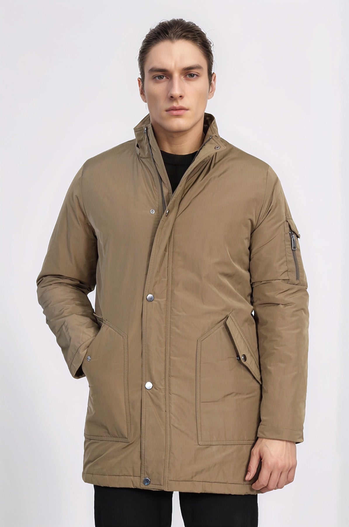 Kapşonlu Cepli Açık Kahverengi Erkek Kaban - Wessi
