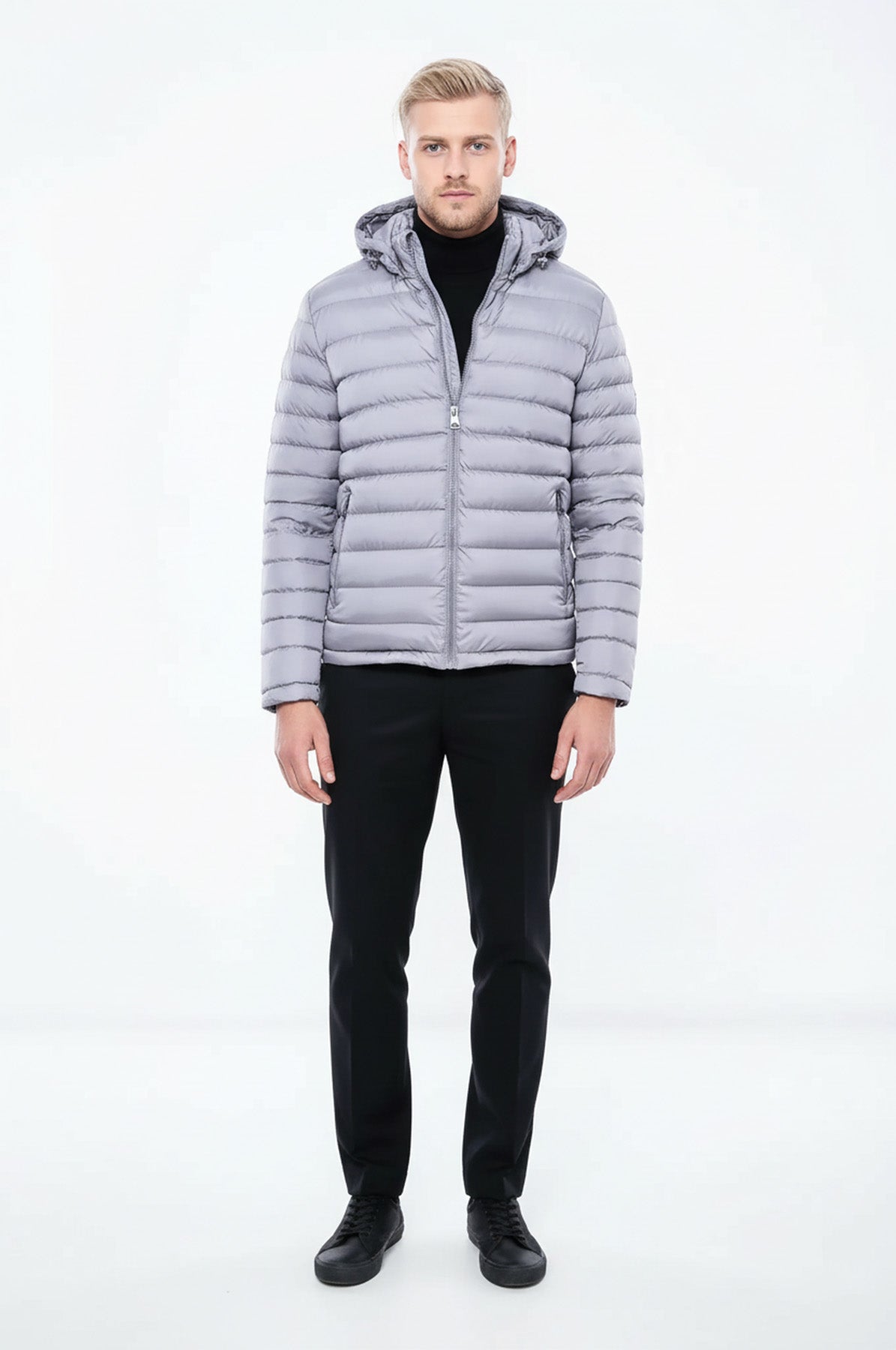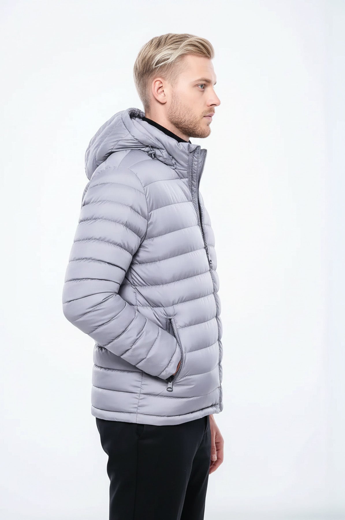 Kapşonlu Şişme Gri Erkek Mont - Wessi