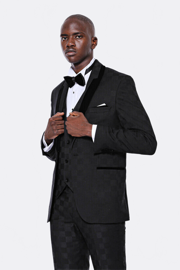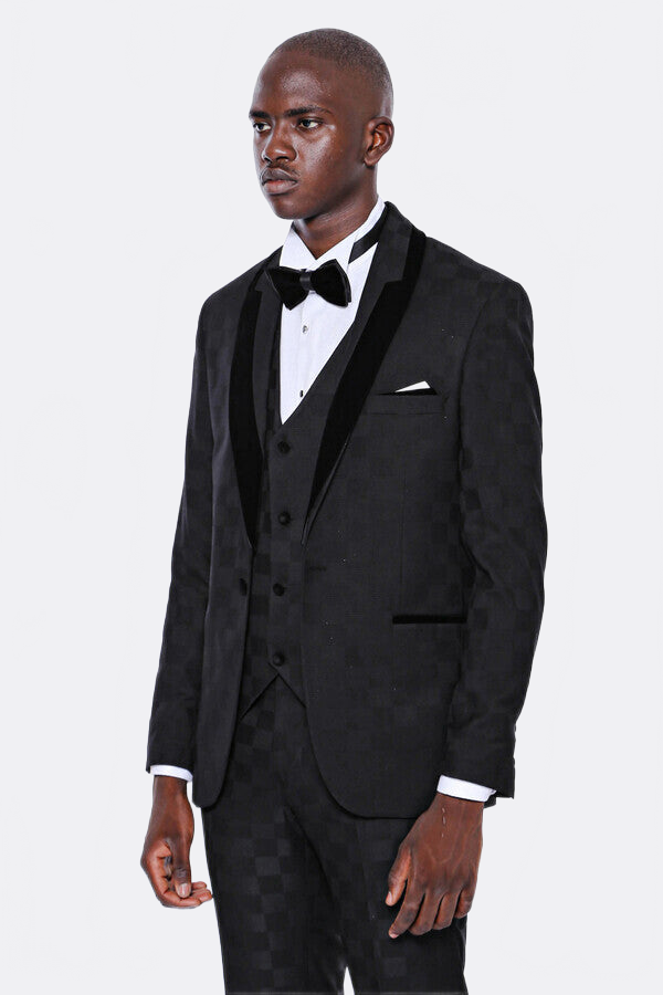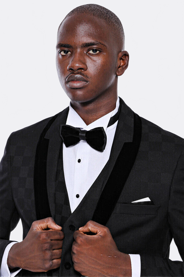 Şık ve derli toplu görünmek her damat için önemlidir. Bu gösterişli görünüme ulaşmanın anahtarlarından biri de dar kesim gömlek ve pantolon gibi üzerinize tam oturan kıyafetler seçmektir. Bunlar, vücut tipinizi düzgünleştirirken aerodinamik bir siluet oluşturmanıza yardımcı olur. Bu siyah kareli takımın modası asla geçmez ve bu takımı ata yaka gömlek ve kadife papyonla eşleştirmeyi deneyebilirsiniz. Düğünler veya resmi davetler gibi özel etkinlikler söz konusu olduğunda, hiçbir şey siyah bir takım elbisenin zamansız şıklığının yerini tutamaz.