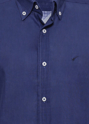 Keten Dokulu Kısa Kollu Lacivert Erkek Gömlek - Wessi