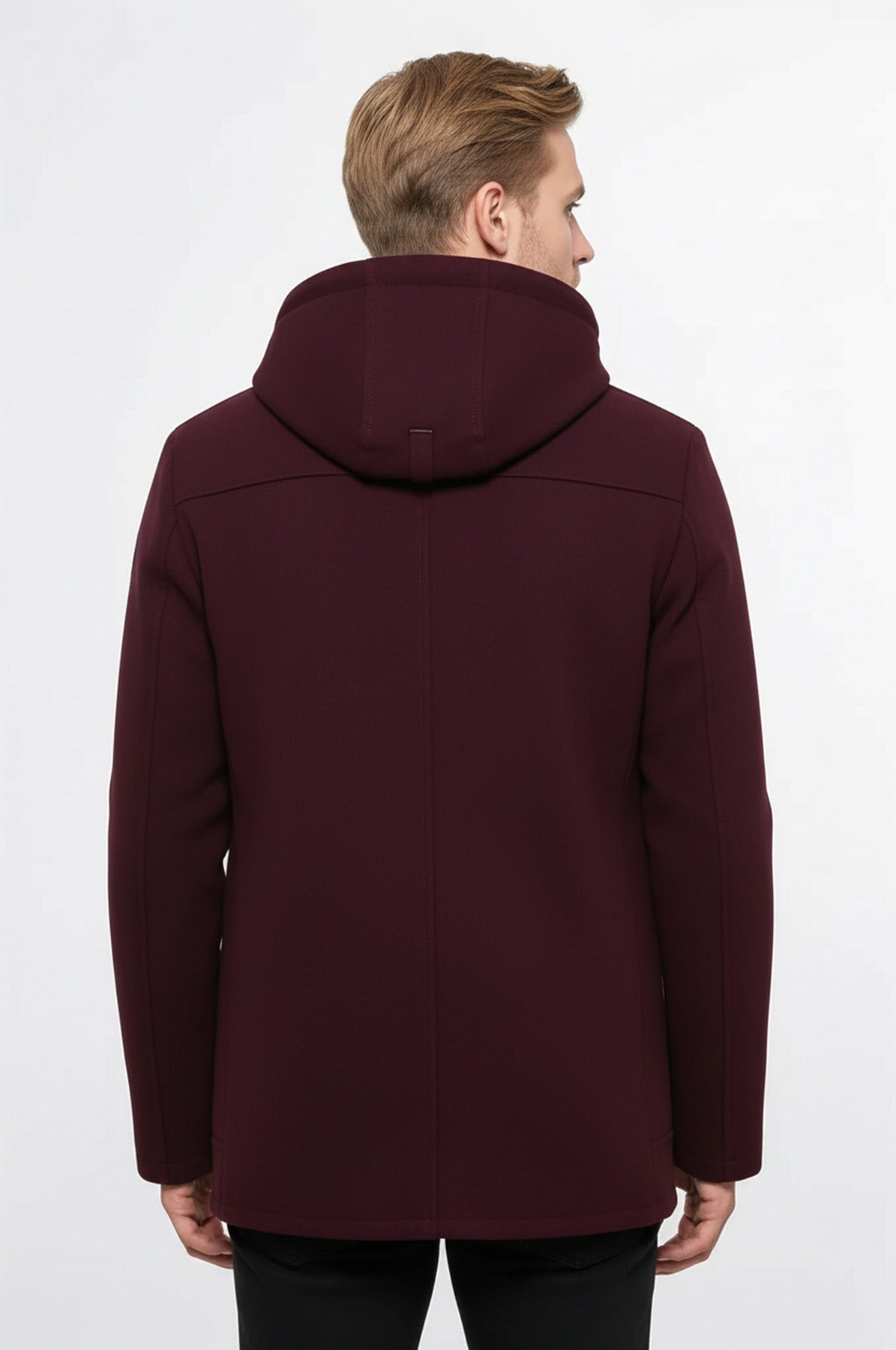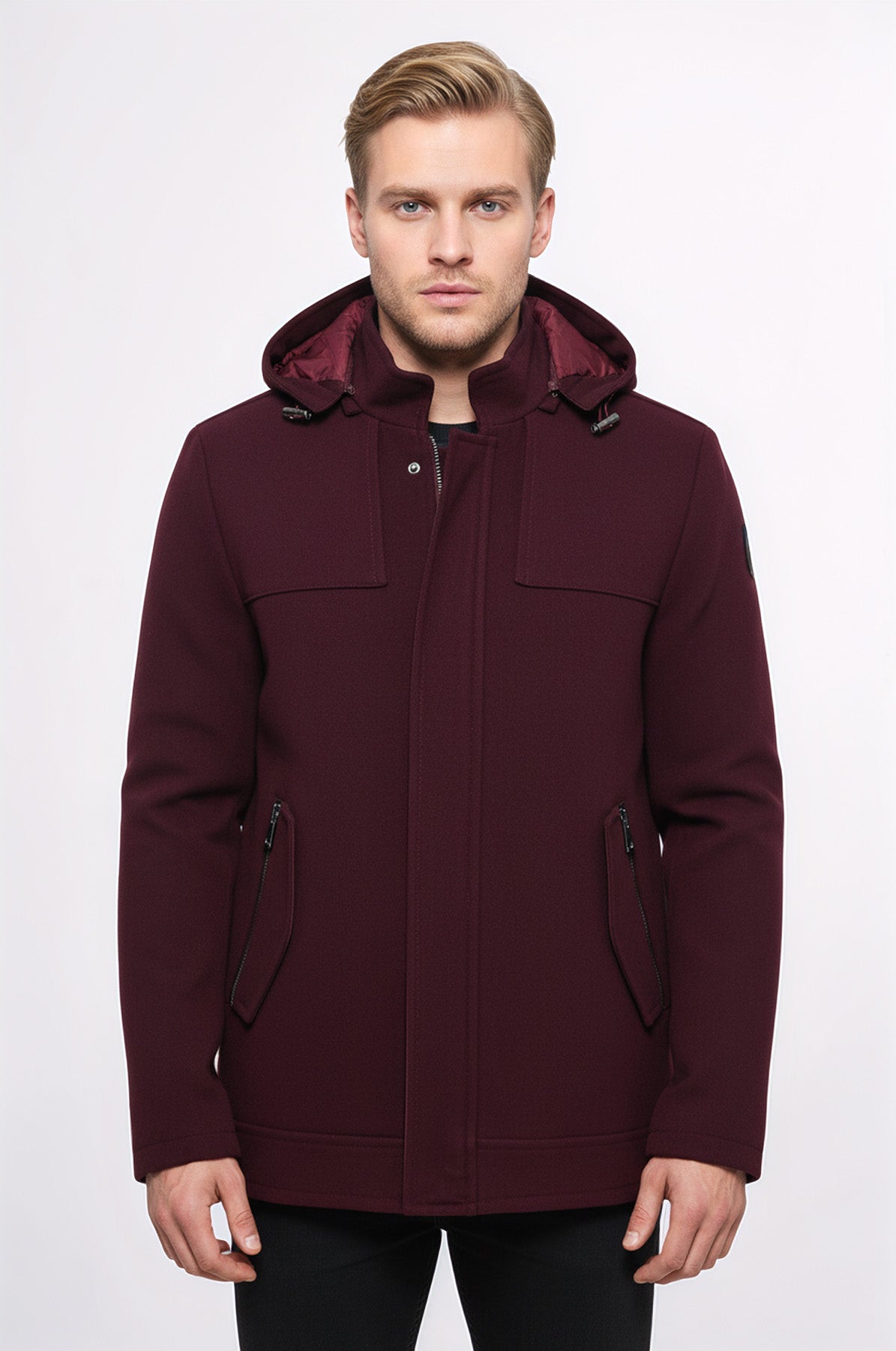Kol Fermuarlı Kapşonlu Bordo Erkek Kaban - Wessi