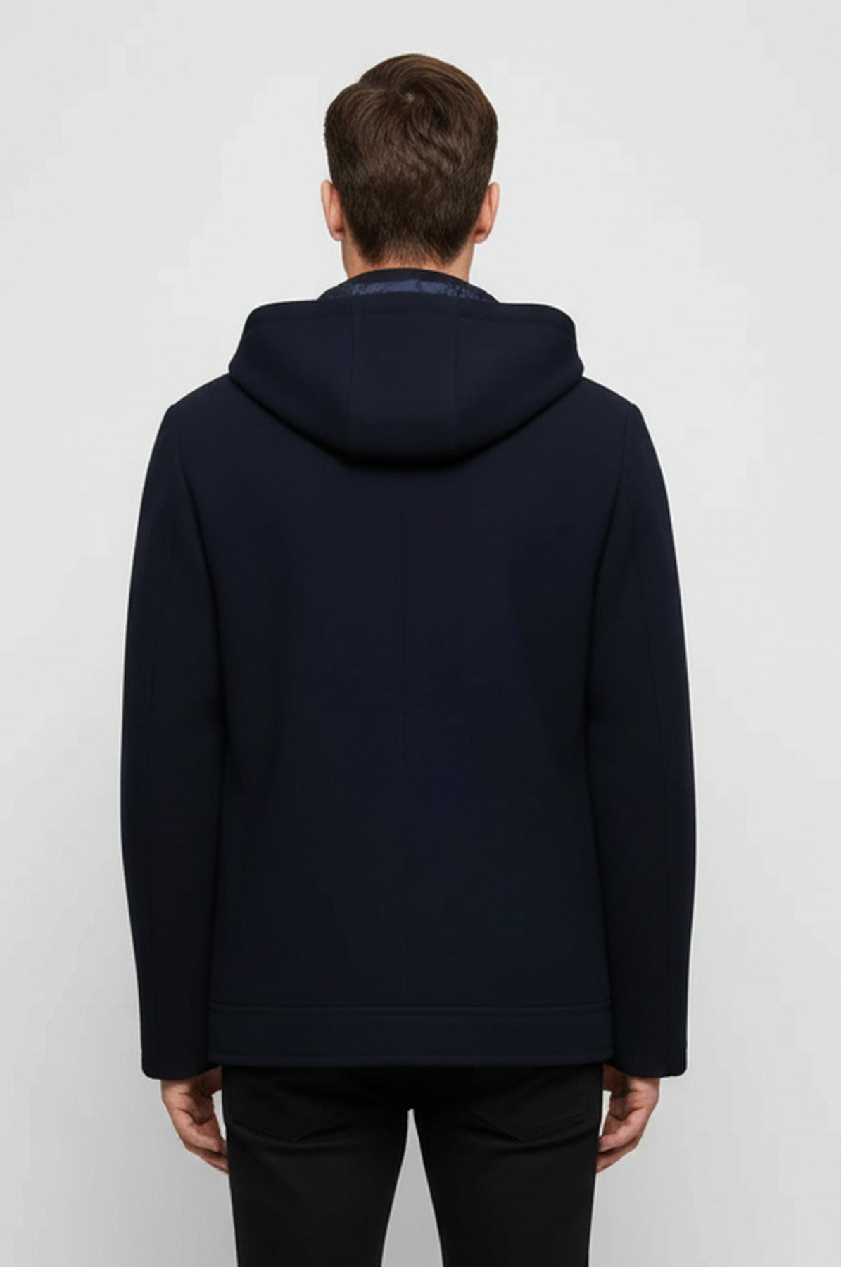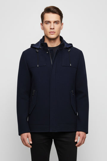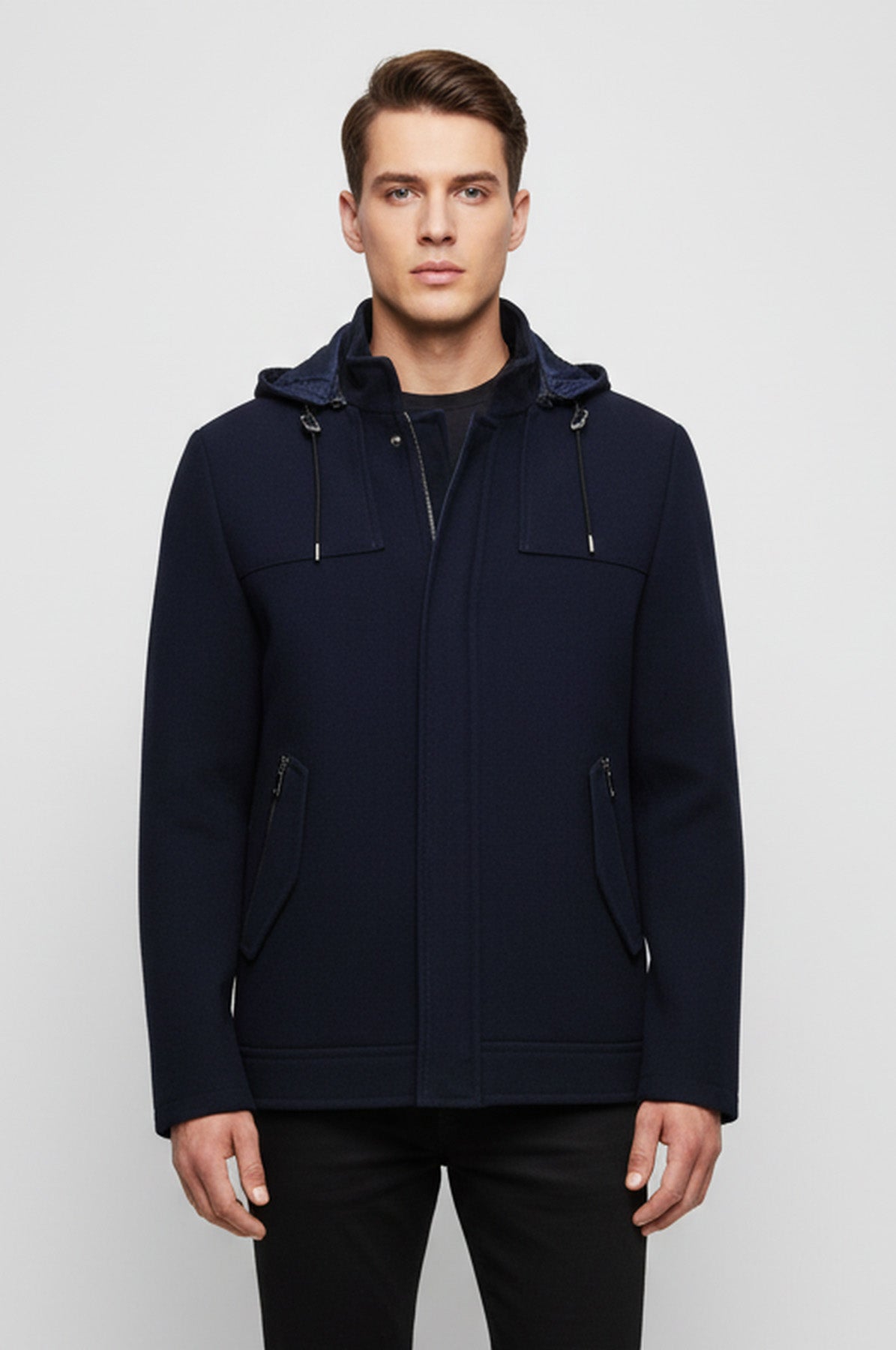 Kol Ve Cepleri Fermuarlı Kapüşonlu Kısa Lacivert Erkek Kaban - Wessi