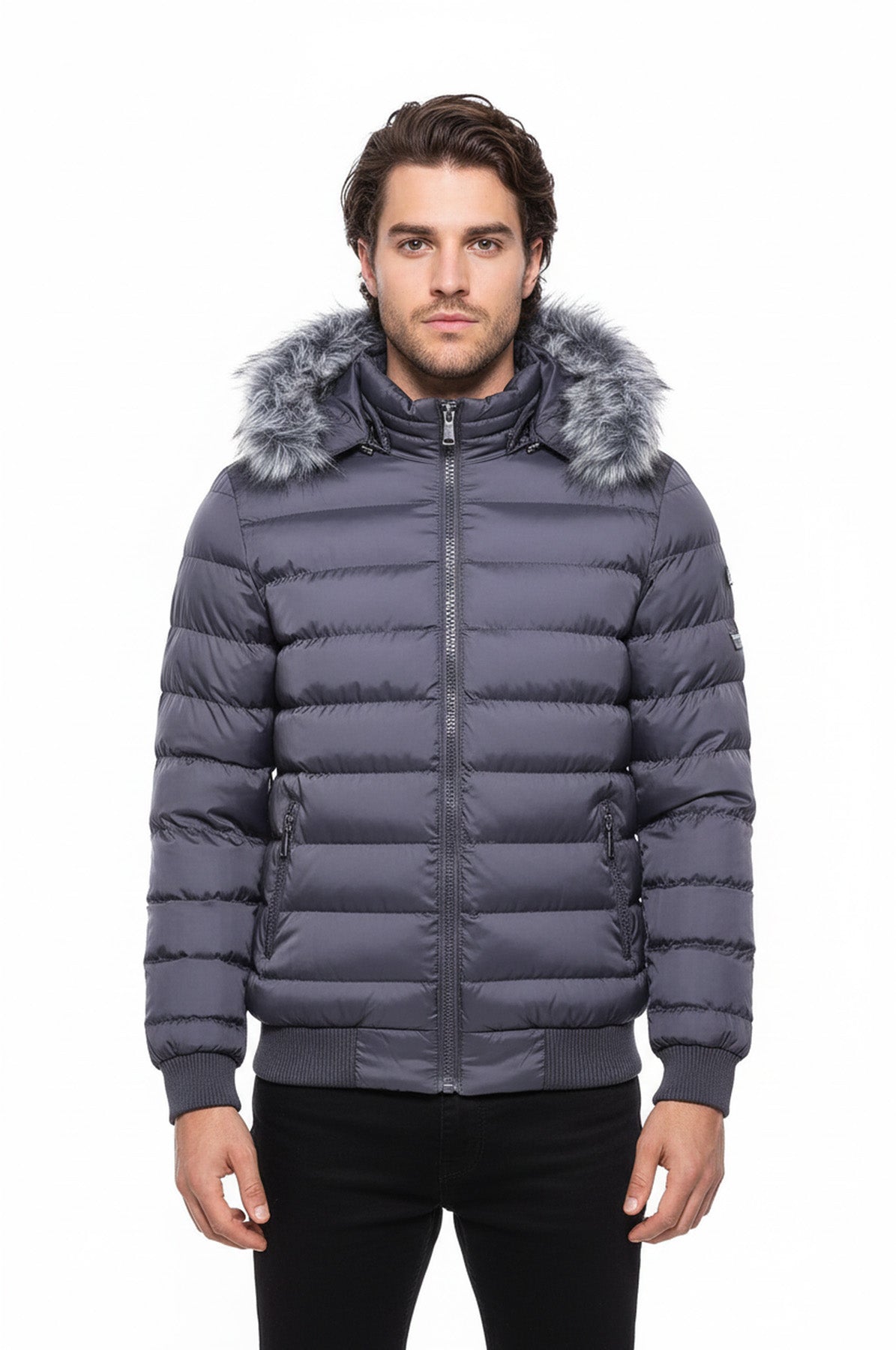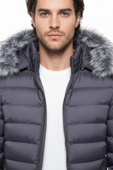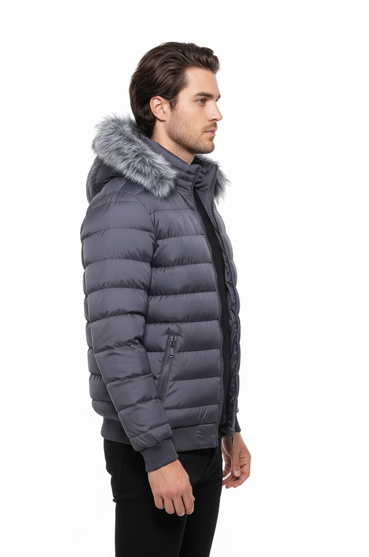 Kürklü Gri Erkek Şişme Mont - Wessi
