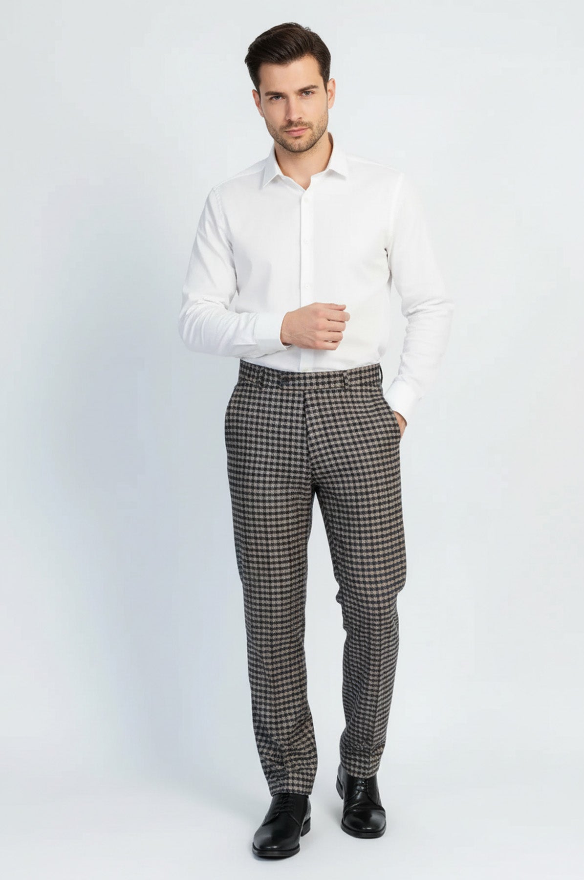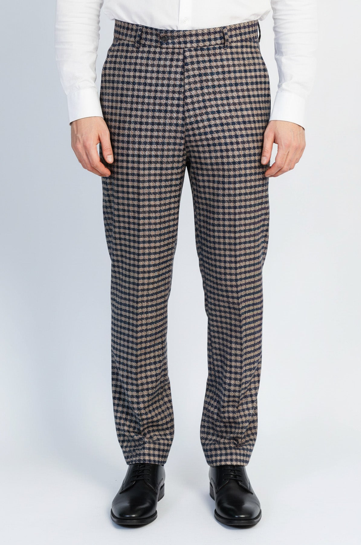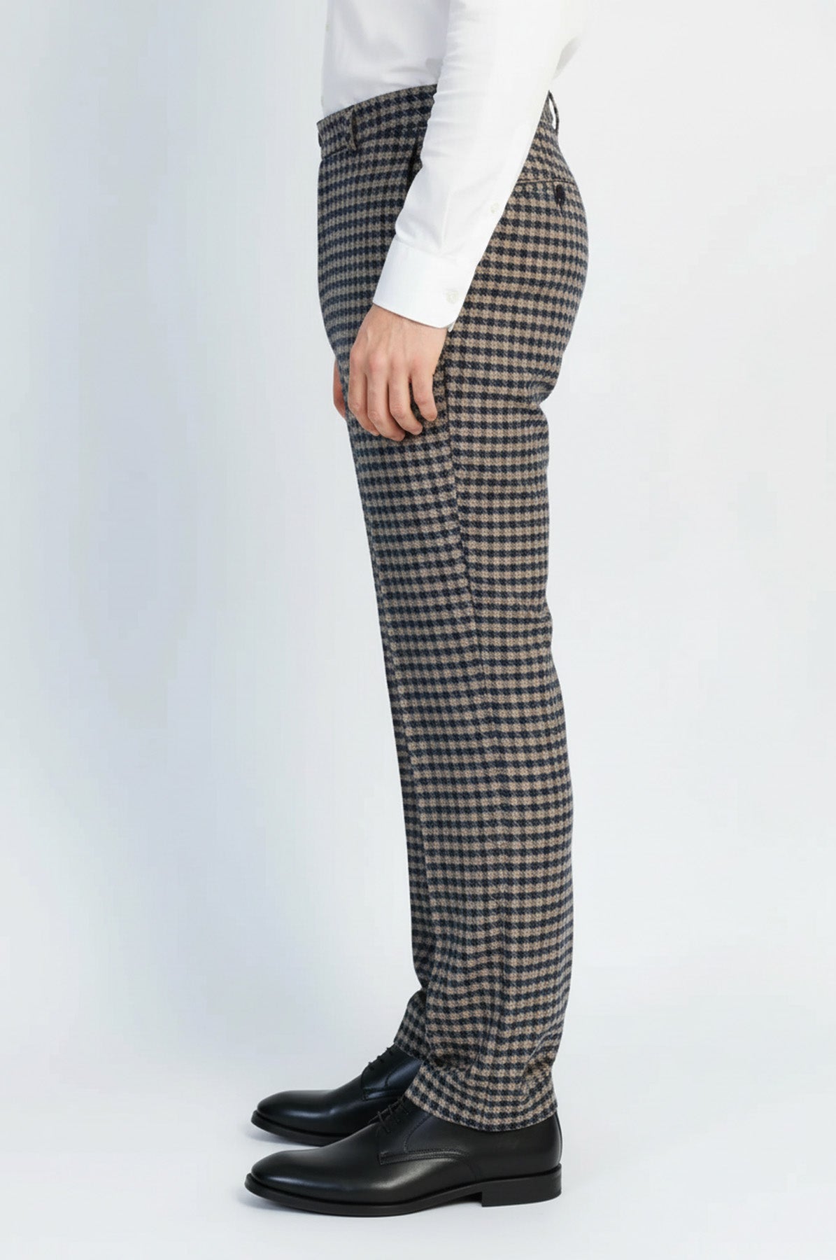 Lacivert Bej Kareli Kumaş Pantolon - Wessi