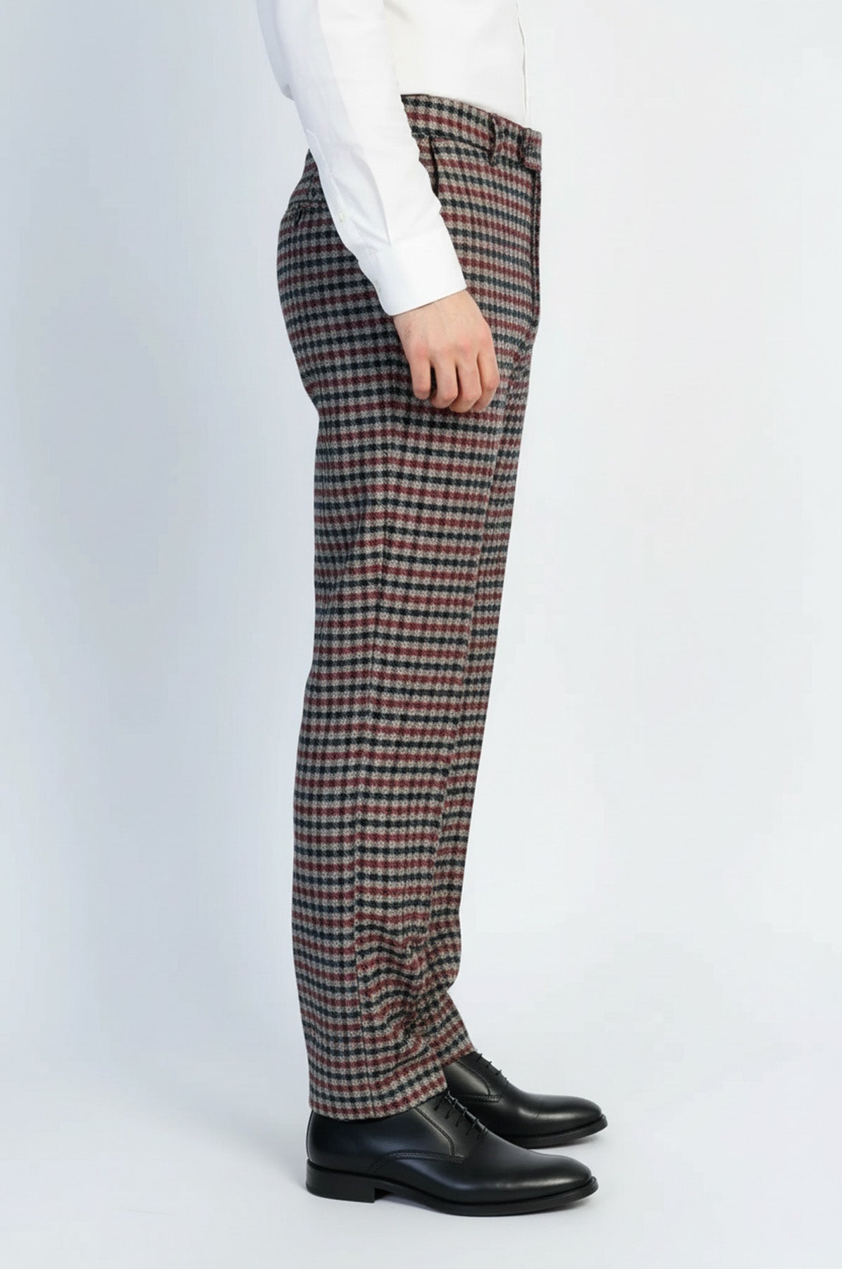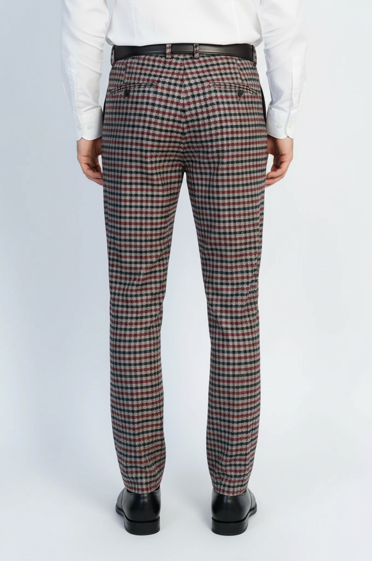 Lacivert Bordo Kareli Kumaş Pantolon - Wessi