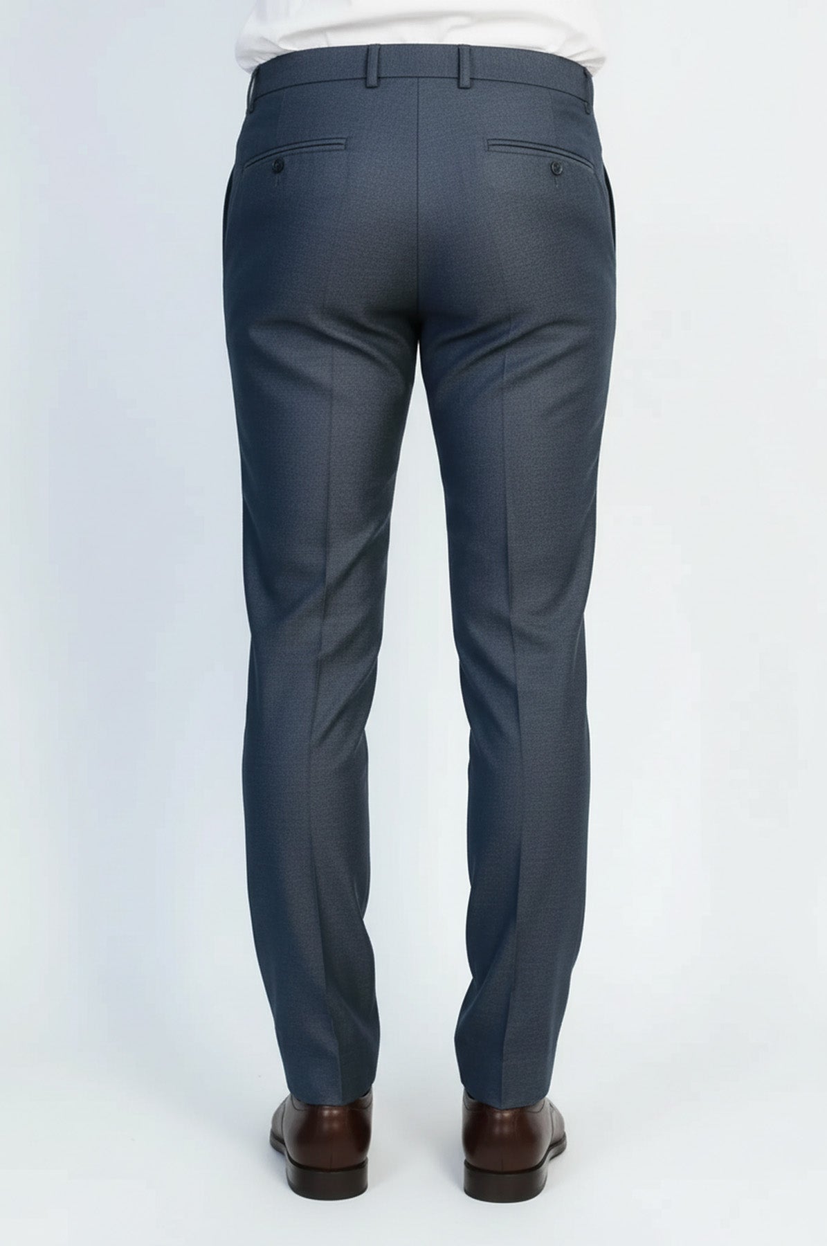 Düz Doku: Sade lacivert pantolonlardan farklı, dinamik ve modern görünüm.