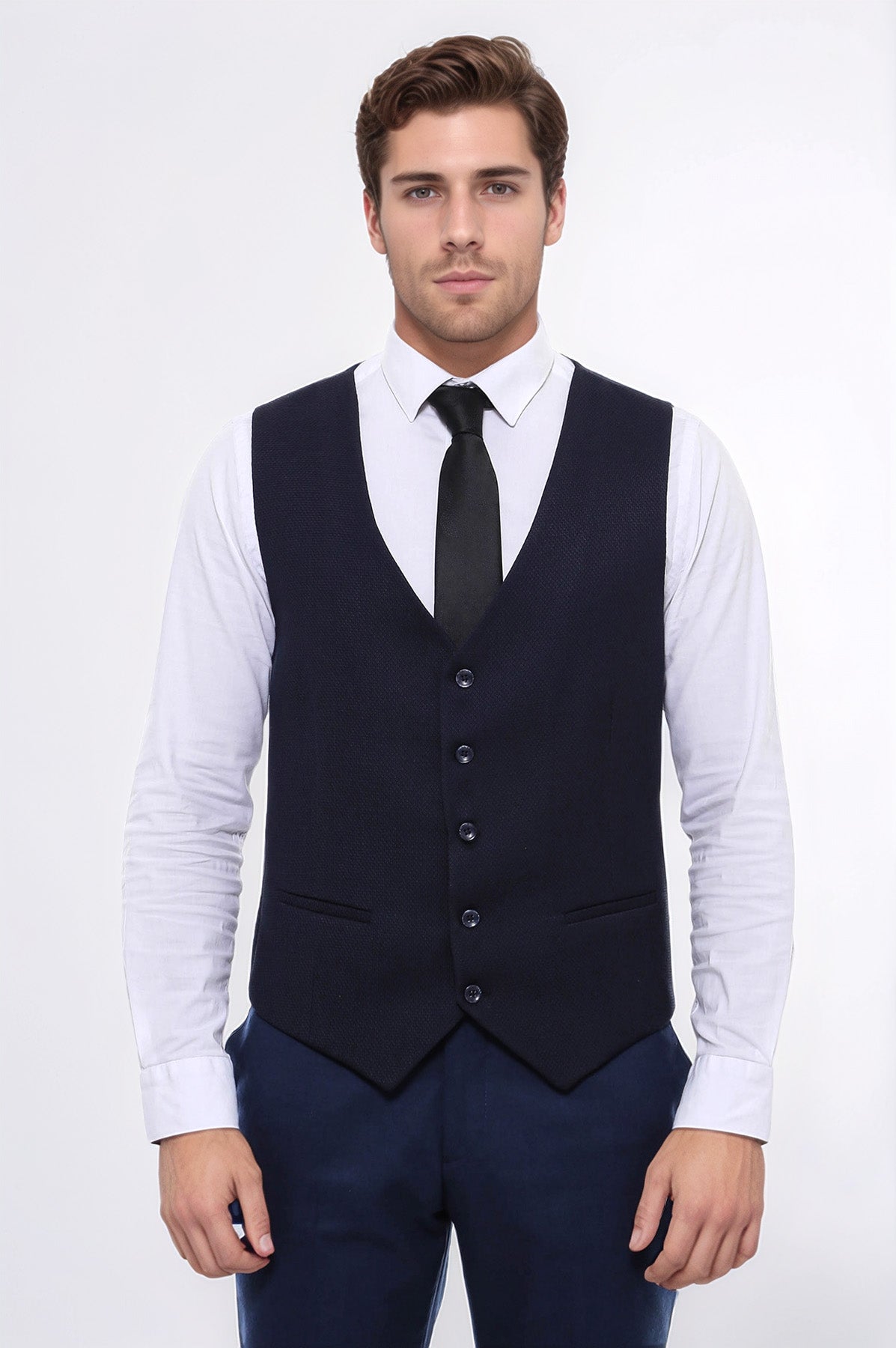 Lacivert Düz Slim Fit Yelek - Wessi