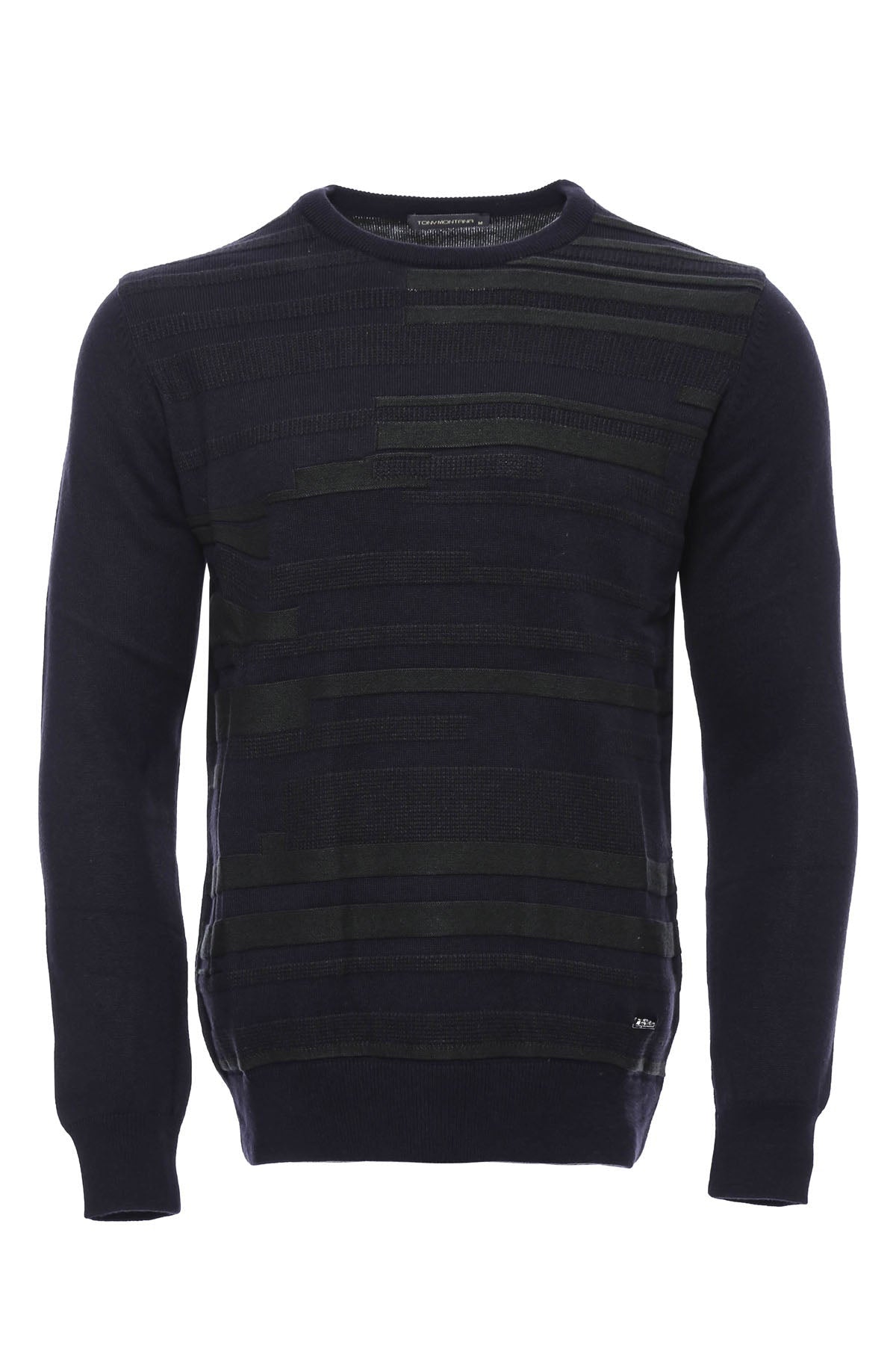 Lacivert kendinden desenli, bisiklet yaka triko modelimizdir.