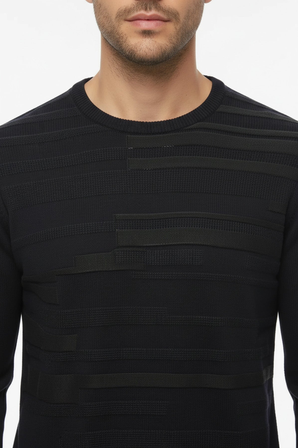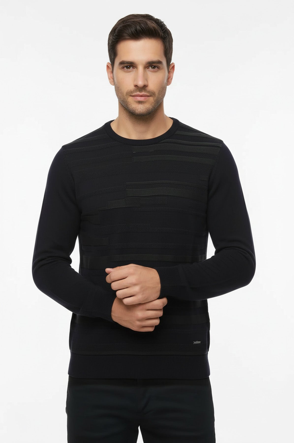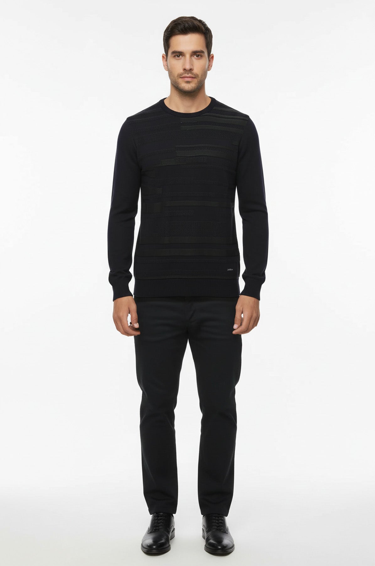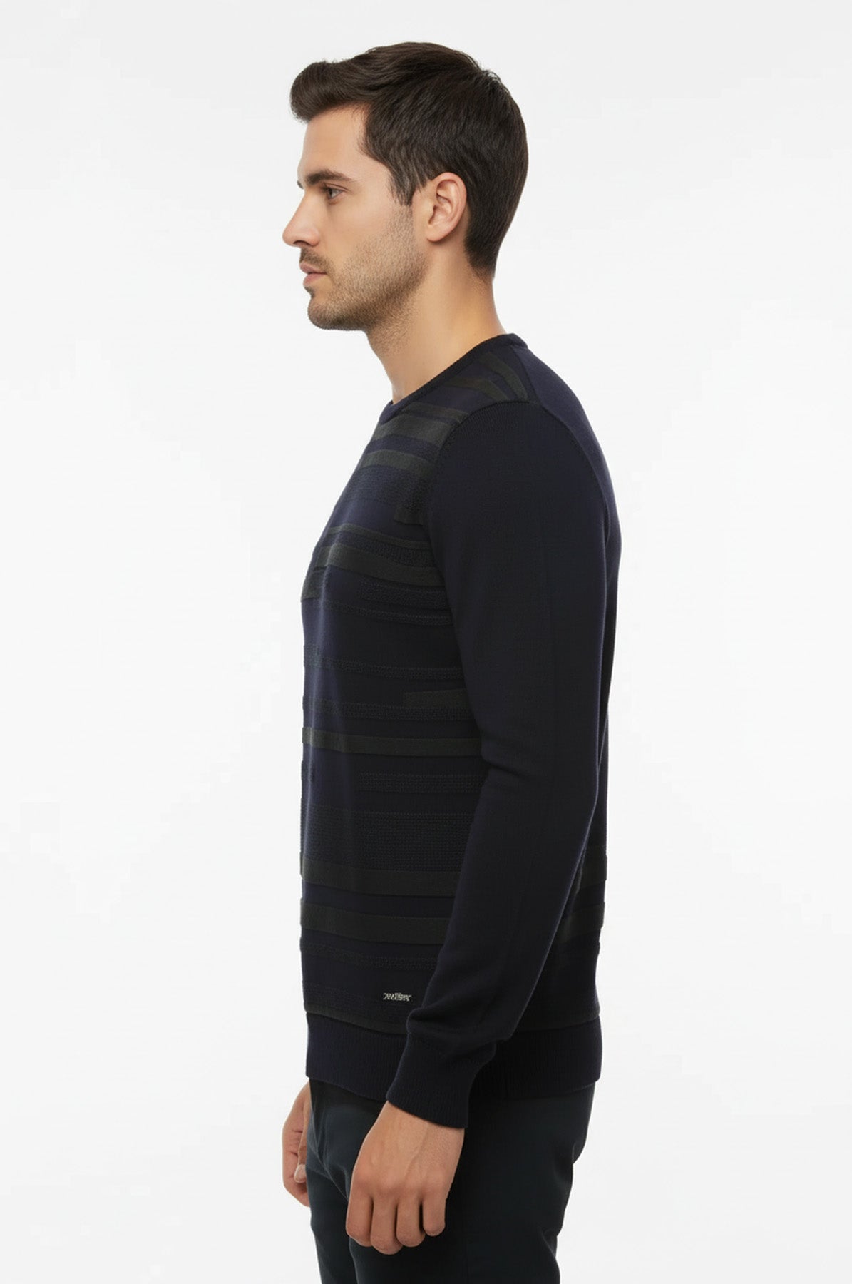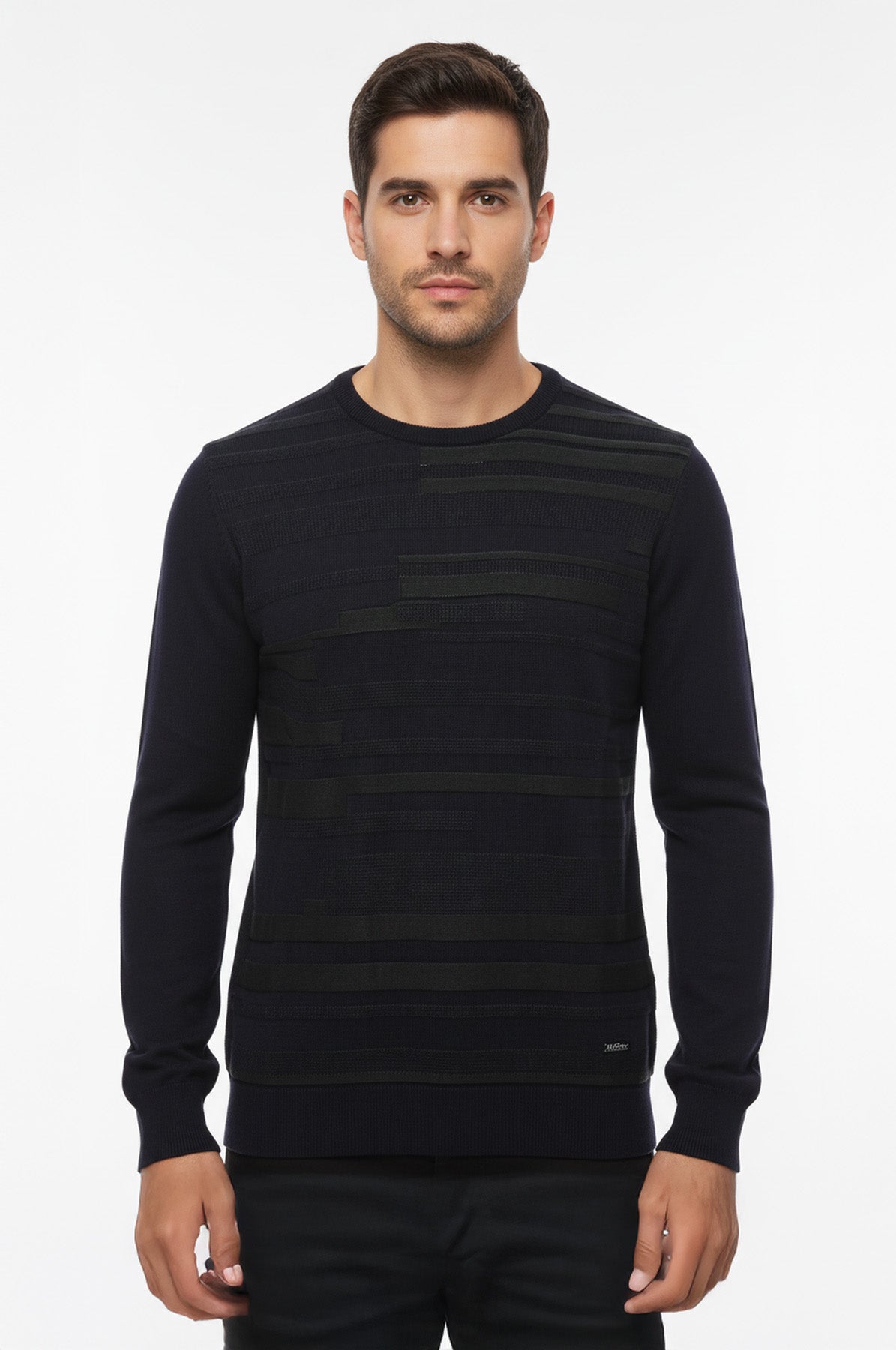 Lacivert Kendinden Desenli Bisiklet Yaka Triko - Wessi