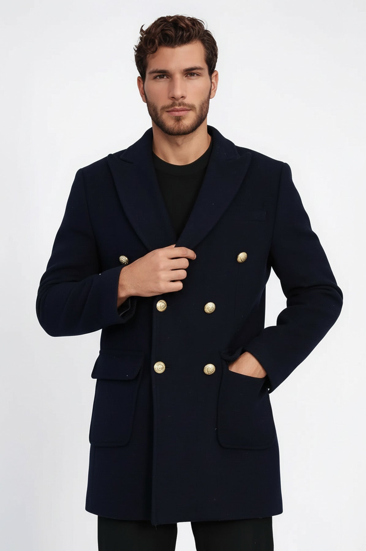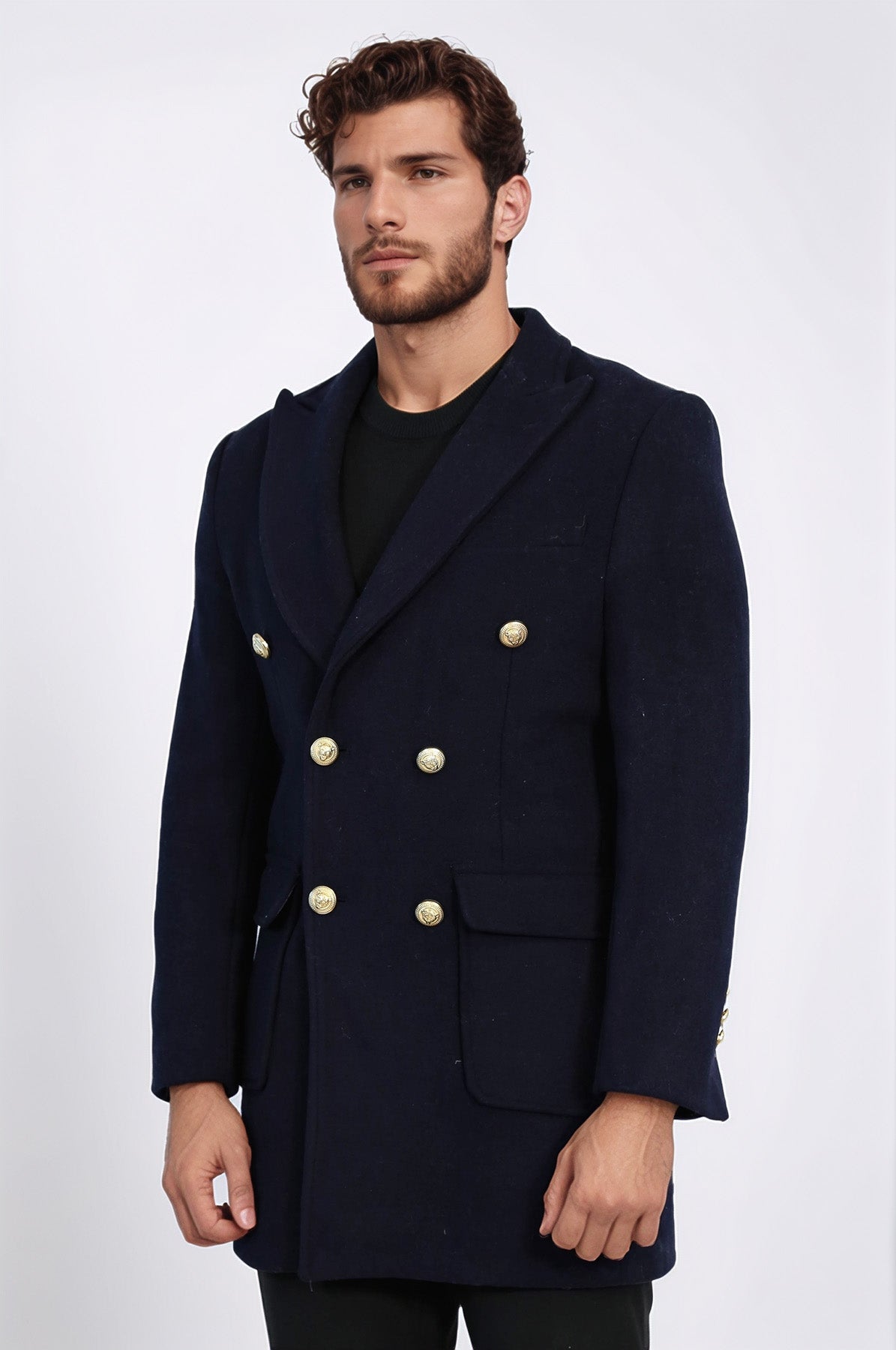 Lacivert Metal Düğmeli Kruvaze Kaban - Wessi
