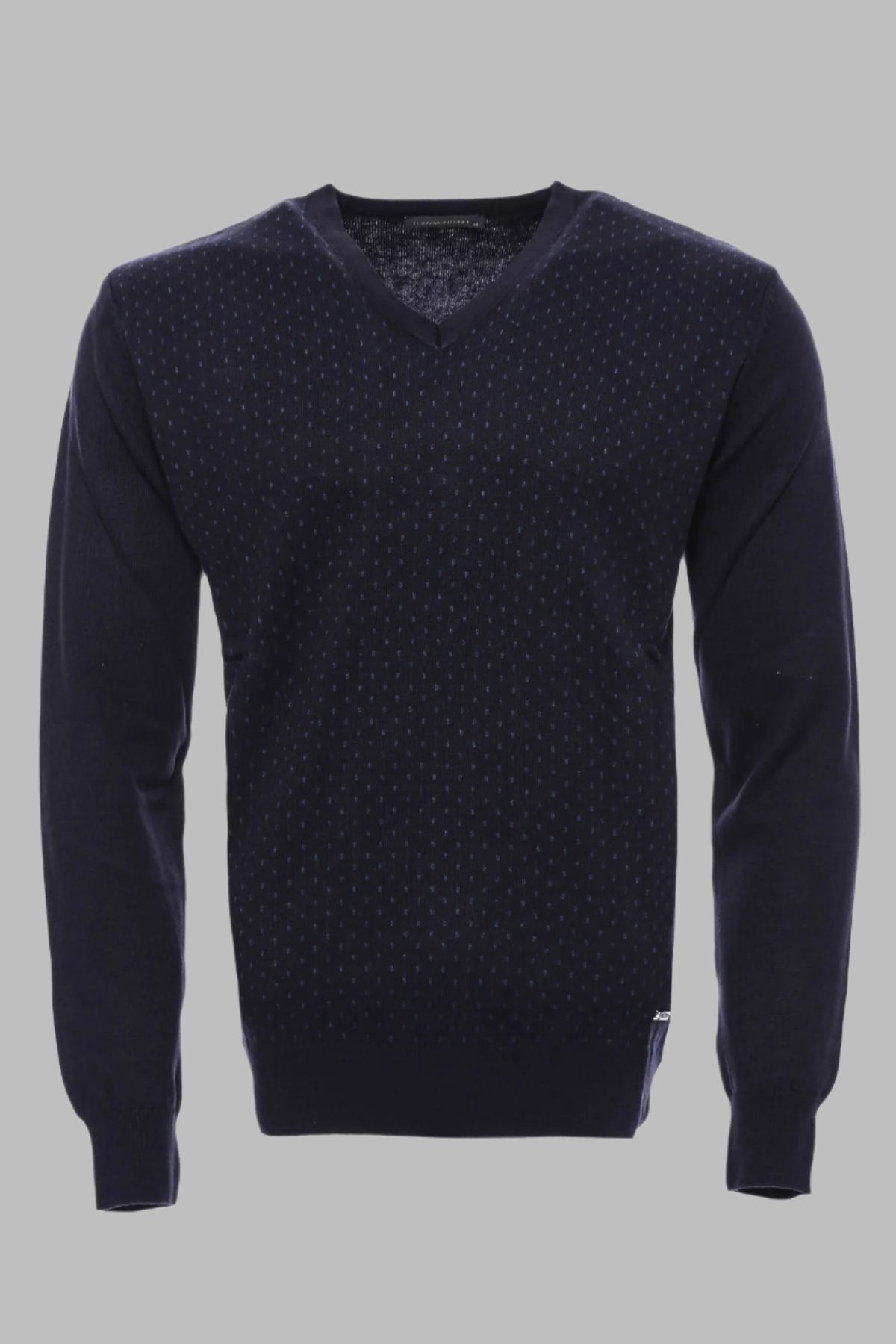 Lacivert Nokta Desenli V Yaka Triko - Wessi
