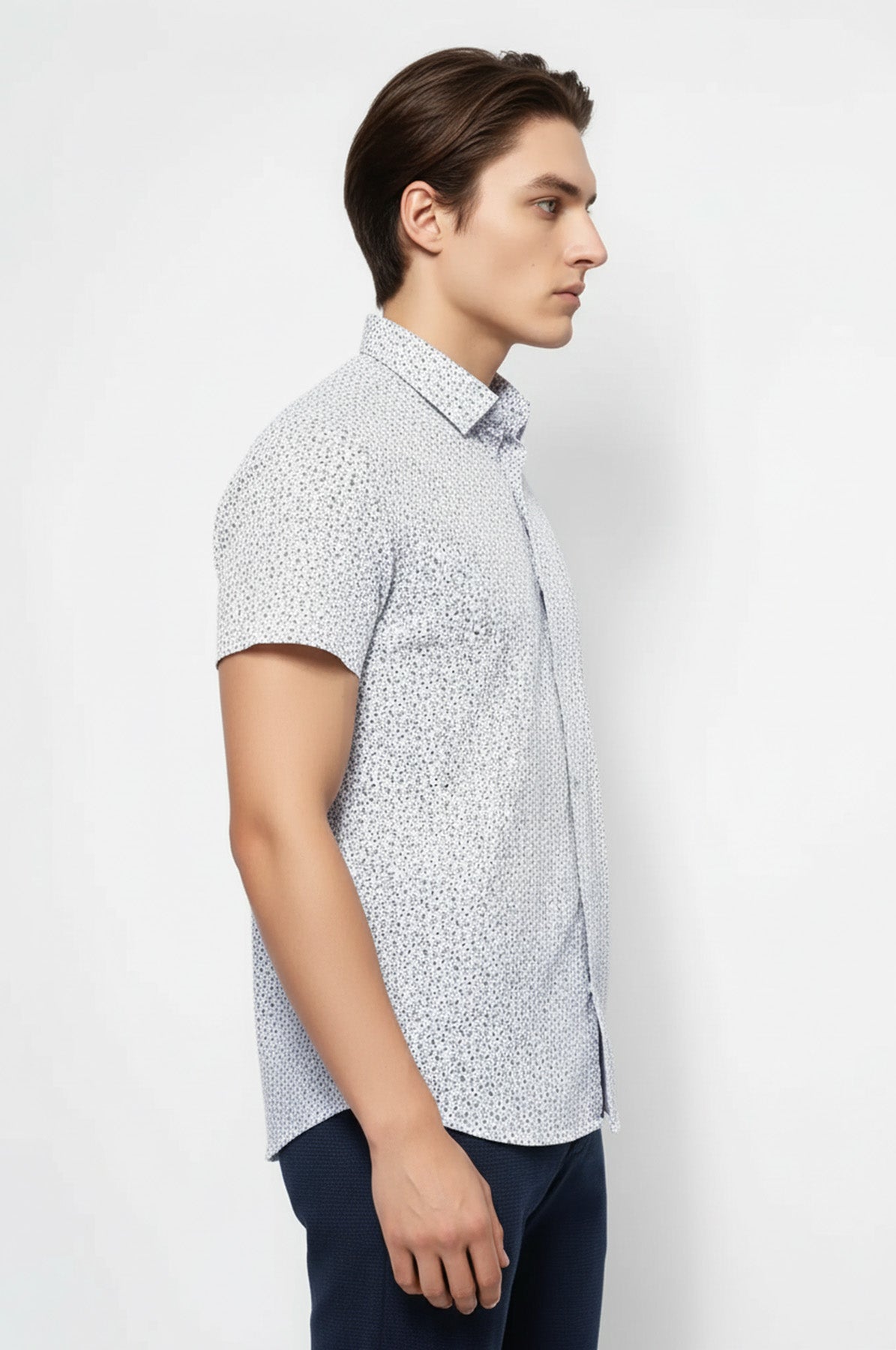 Mavi Çiçek Desenli Kısa Kollu Beyaz Erkek Gömlek - Wessi