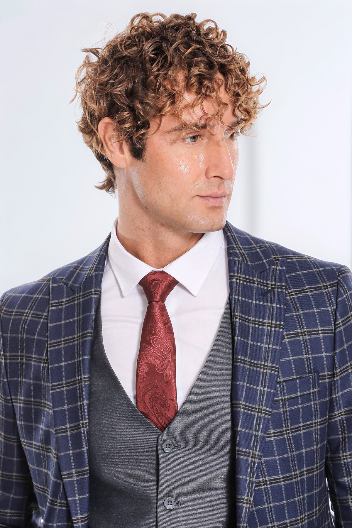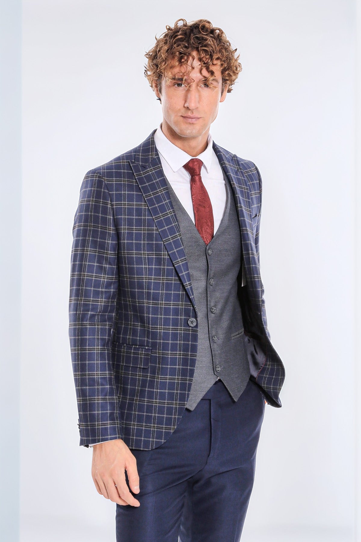 Desen: Ekose Ceket, Desensiz Pantolon ve Yelek