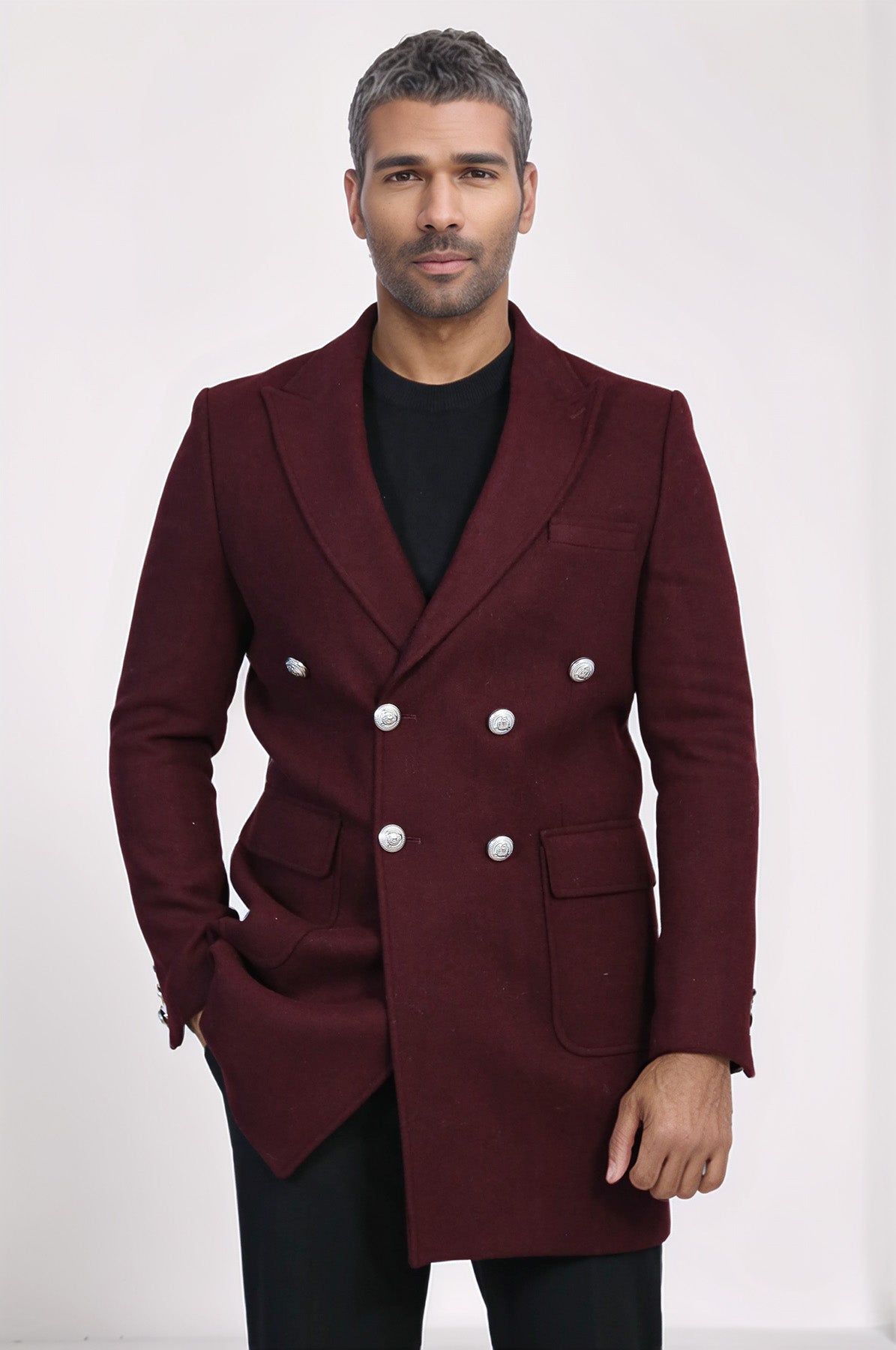 Bu Metal Düğmeli Çift Sıralı Bordo Renkli Uzun Erkek Palto, benzersiz düğme detayları ve şık tasarımı ile zarafeti ve stili yansıtıyor. Yüksek kaliteli malzemelerle üretilmiş olan bu palto, sadece modaya uygun değil, aynı zamanda dayanıklı ve pratik. Her durum için mükemmel olan bu palto, her erkeğin gardırobunda olması gereken bir parça.
