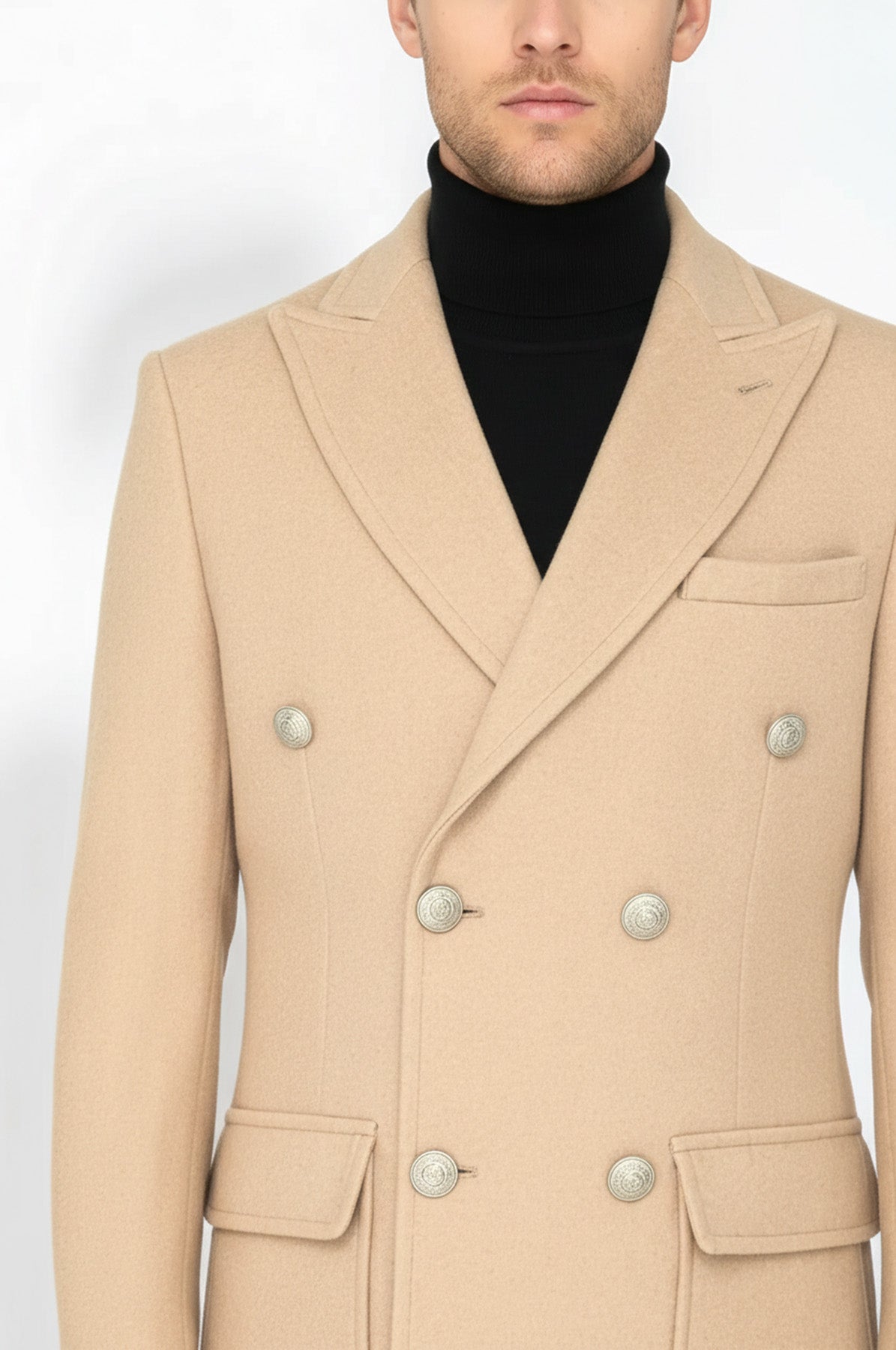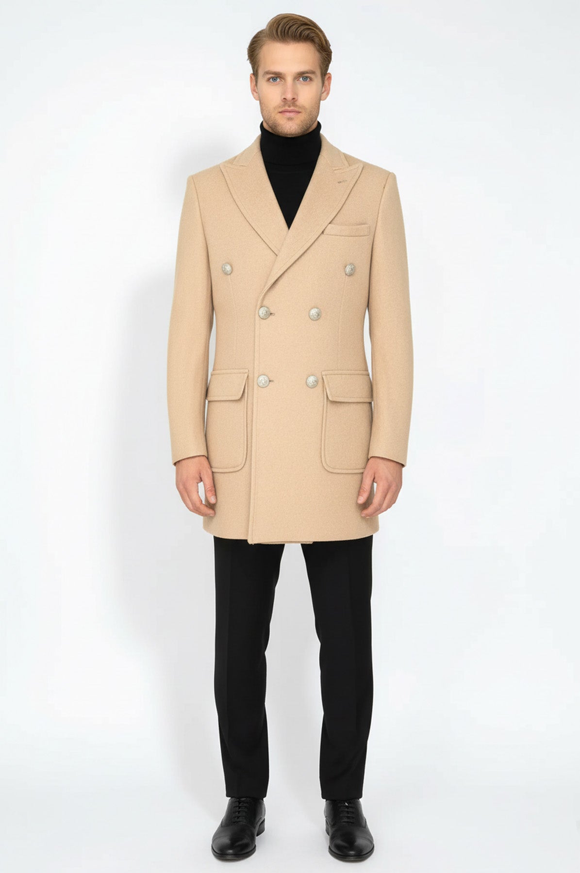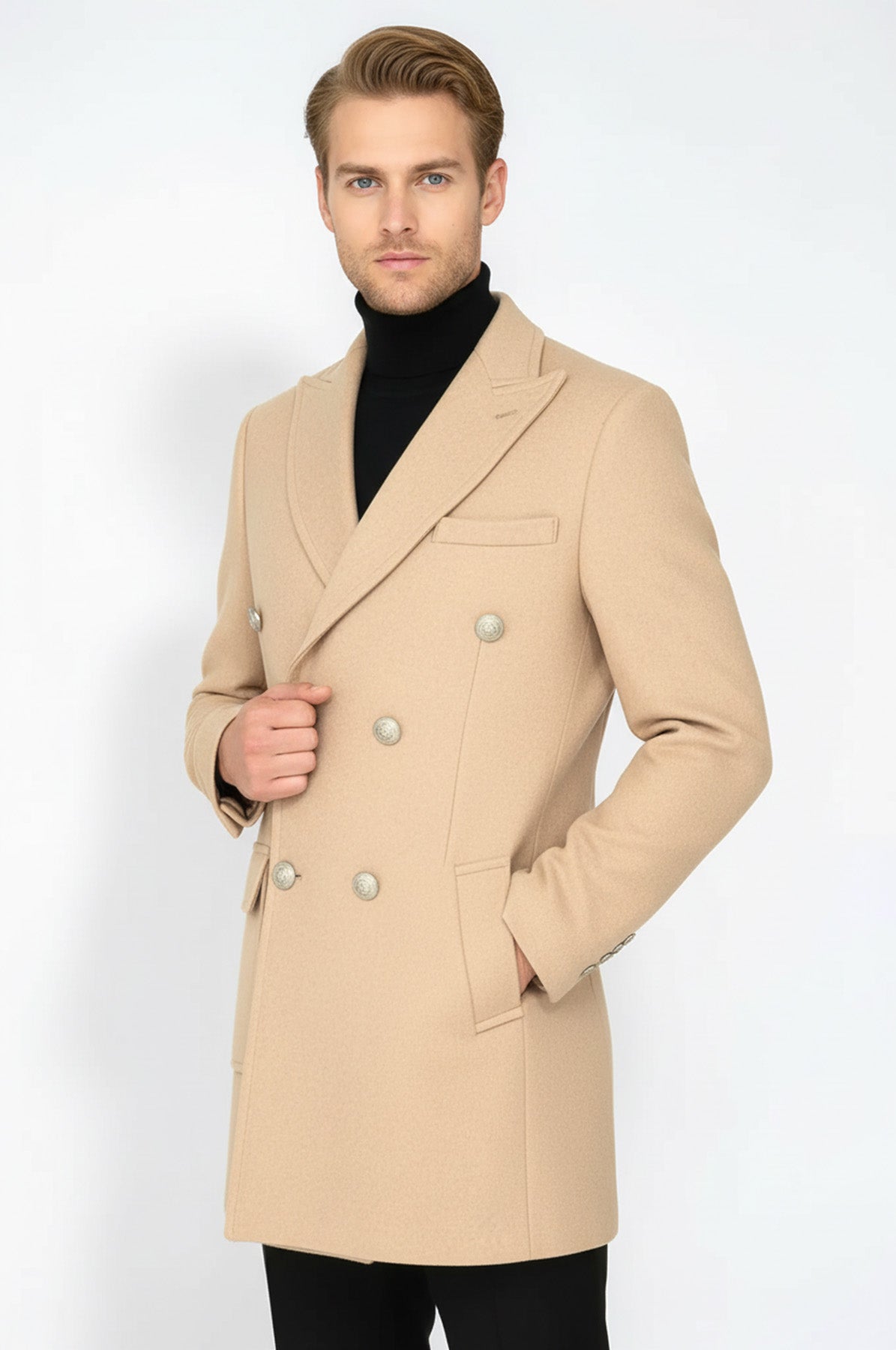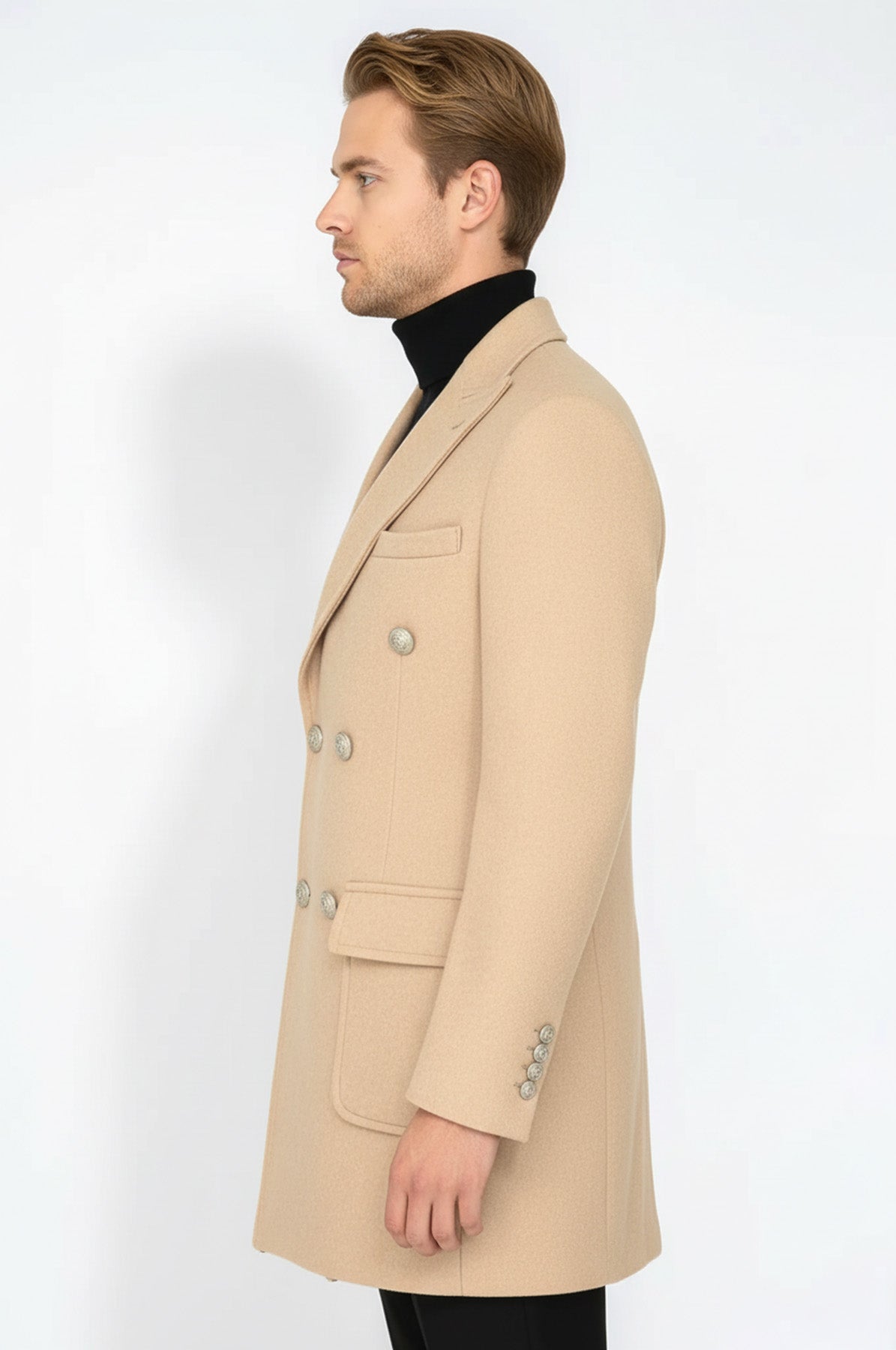 Metal Düğmeli Yün Kaşe Açık Pembe Erkek Kruvaze Kaban - Wessi