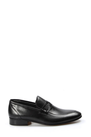 Örgü Askı Detaylı Siyah Deri Erkek Bağıcıksız Loafer - Wessi
