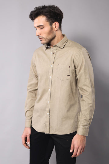 Pamuk Bej Uzun Kollu Erkek Gömlek - Wessi