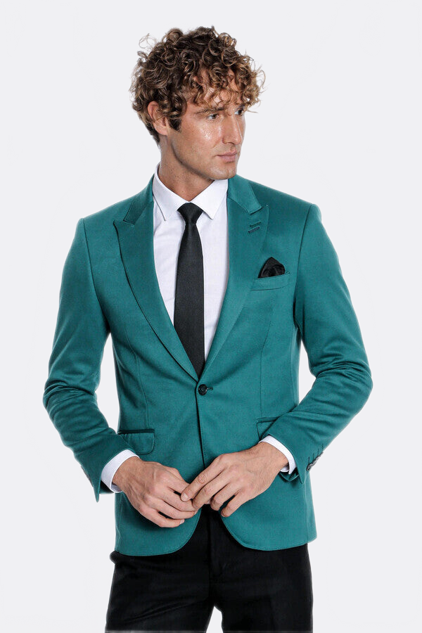 Pamuk Slim Fit Desensiz Yeşil Erkek Ceket - Wessi