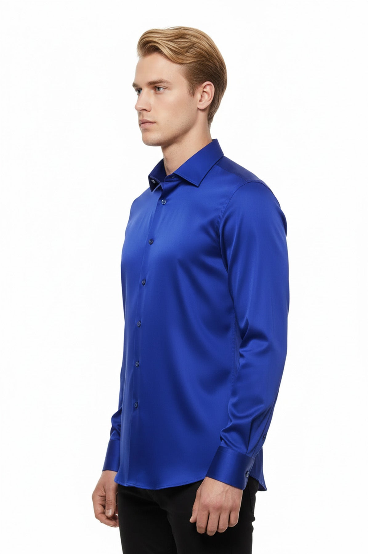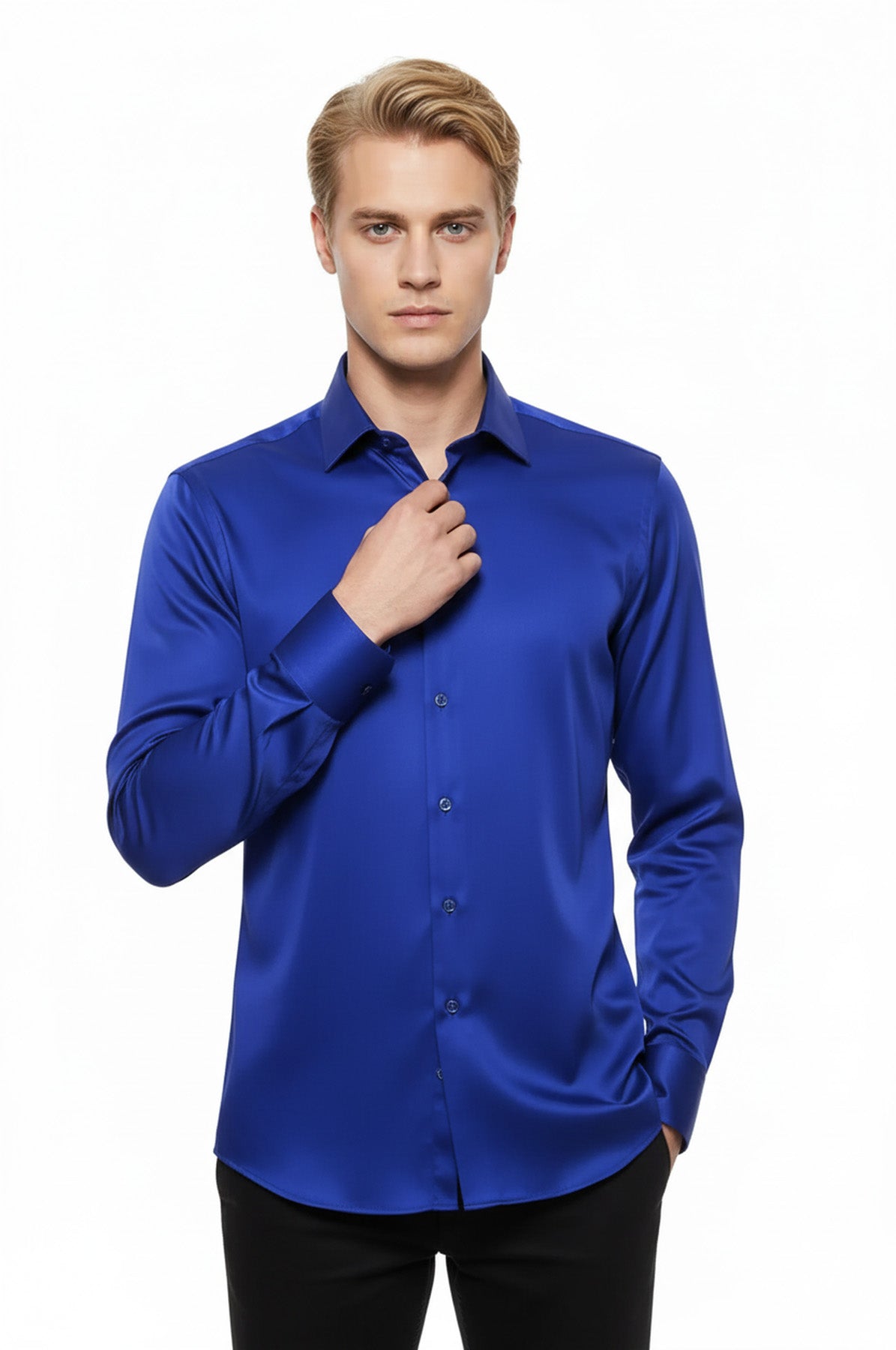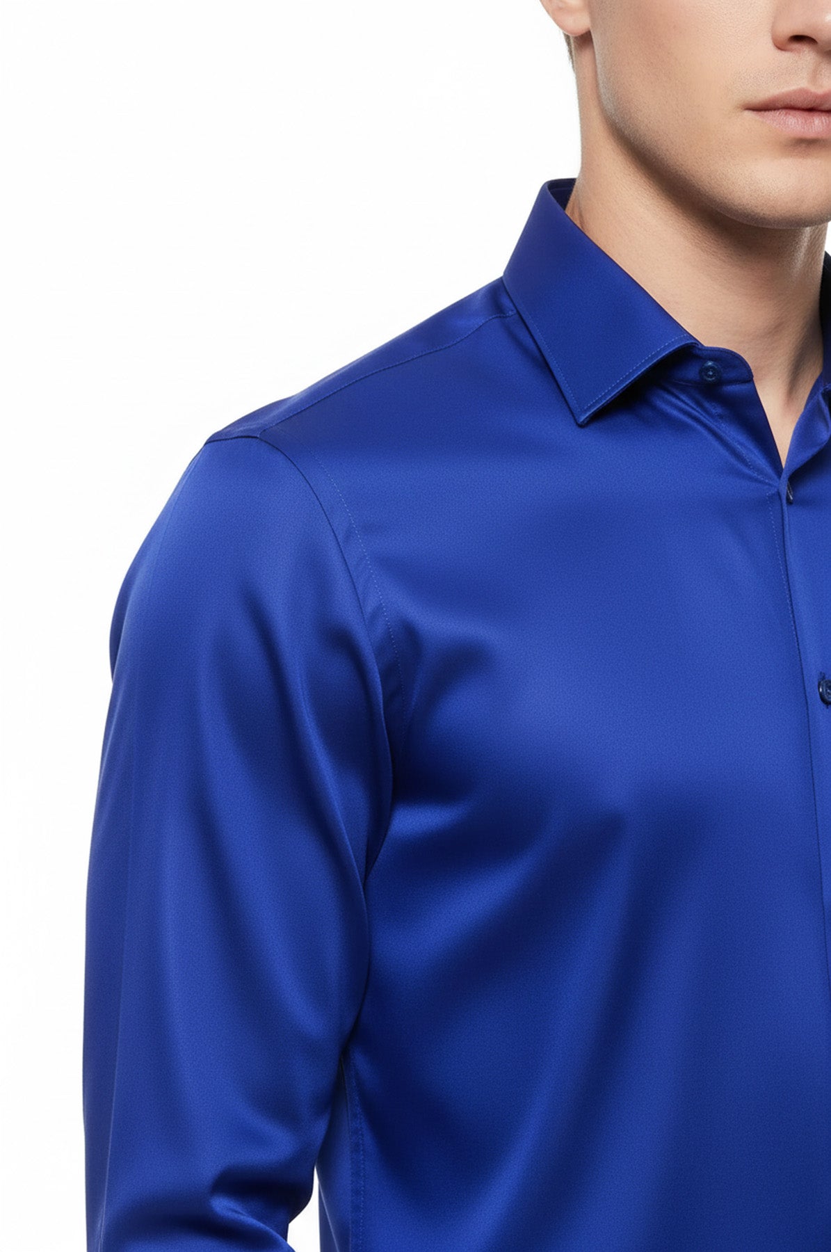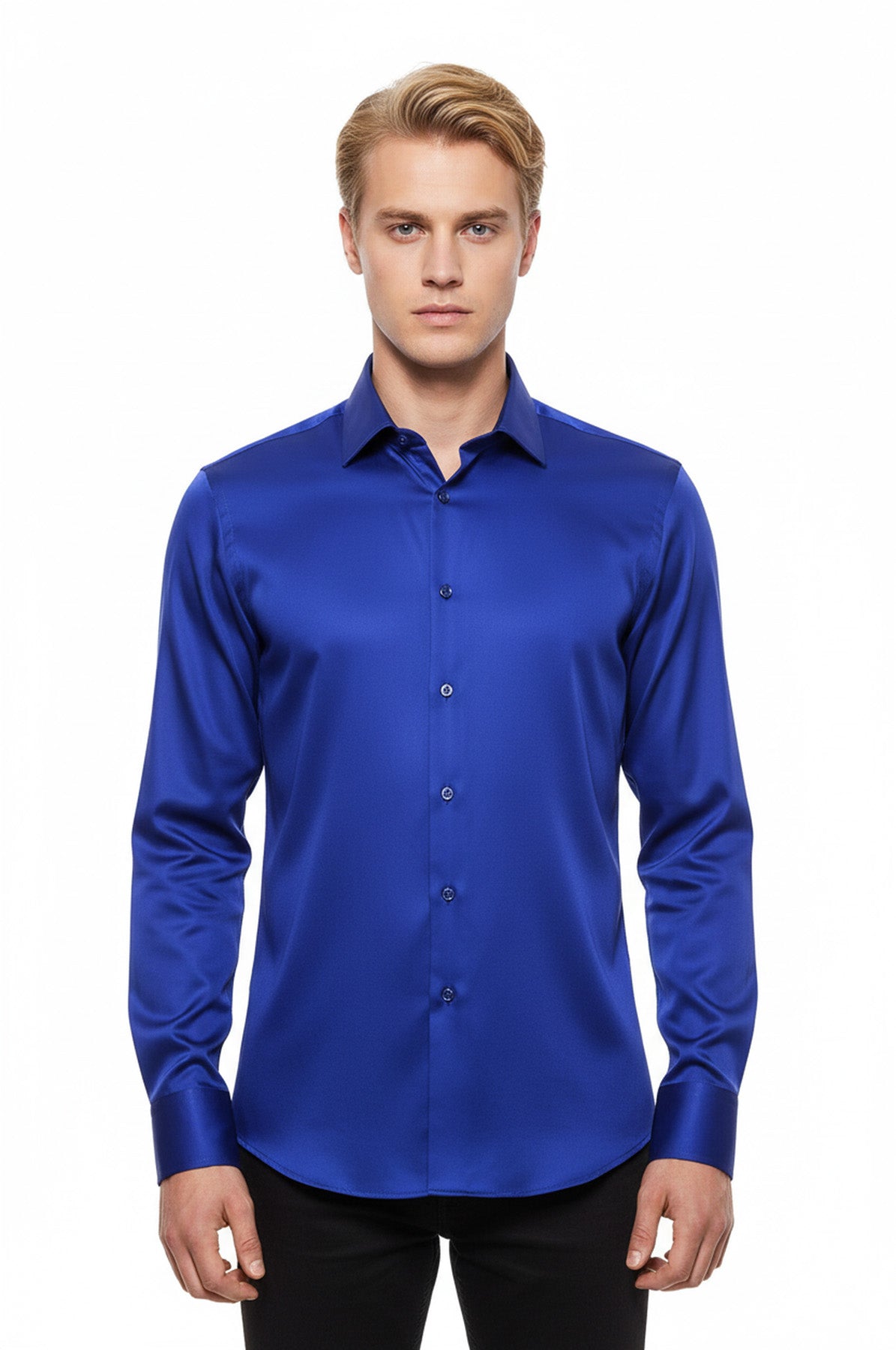 Parlak Mavi Saten Erkek Gömlek - Wessi