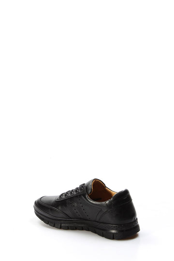 Rahat Tabanlı Siyah Delikli Deri Erkek Spor Ayakkabı - Wessi