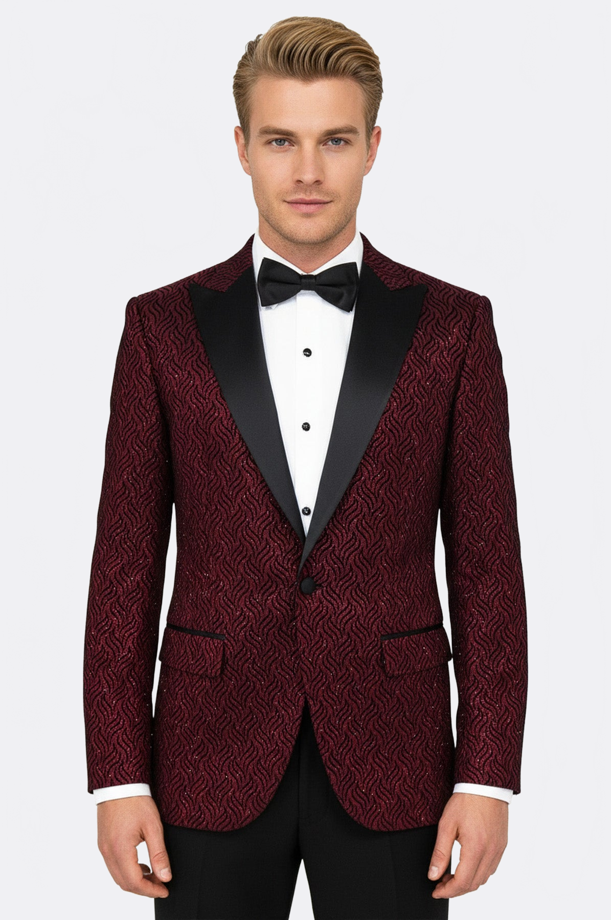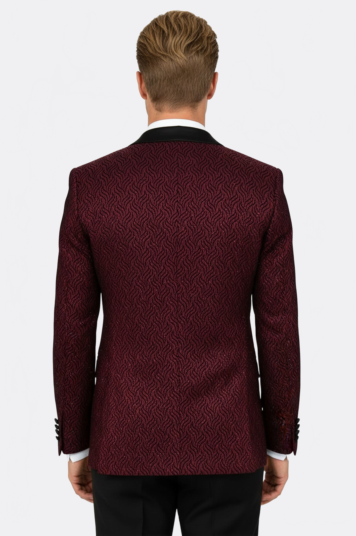 Simli Desenli Bordo Erkek Smokin Ceket - Wessi