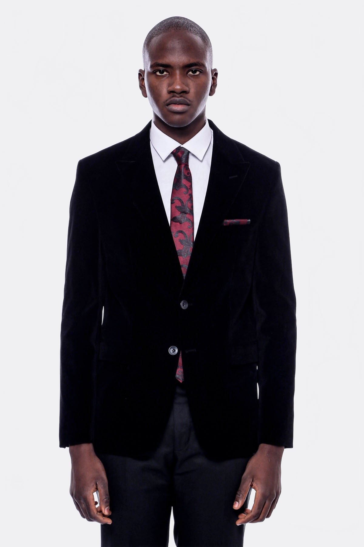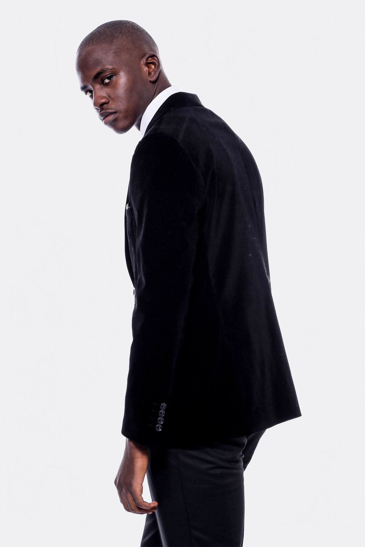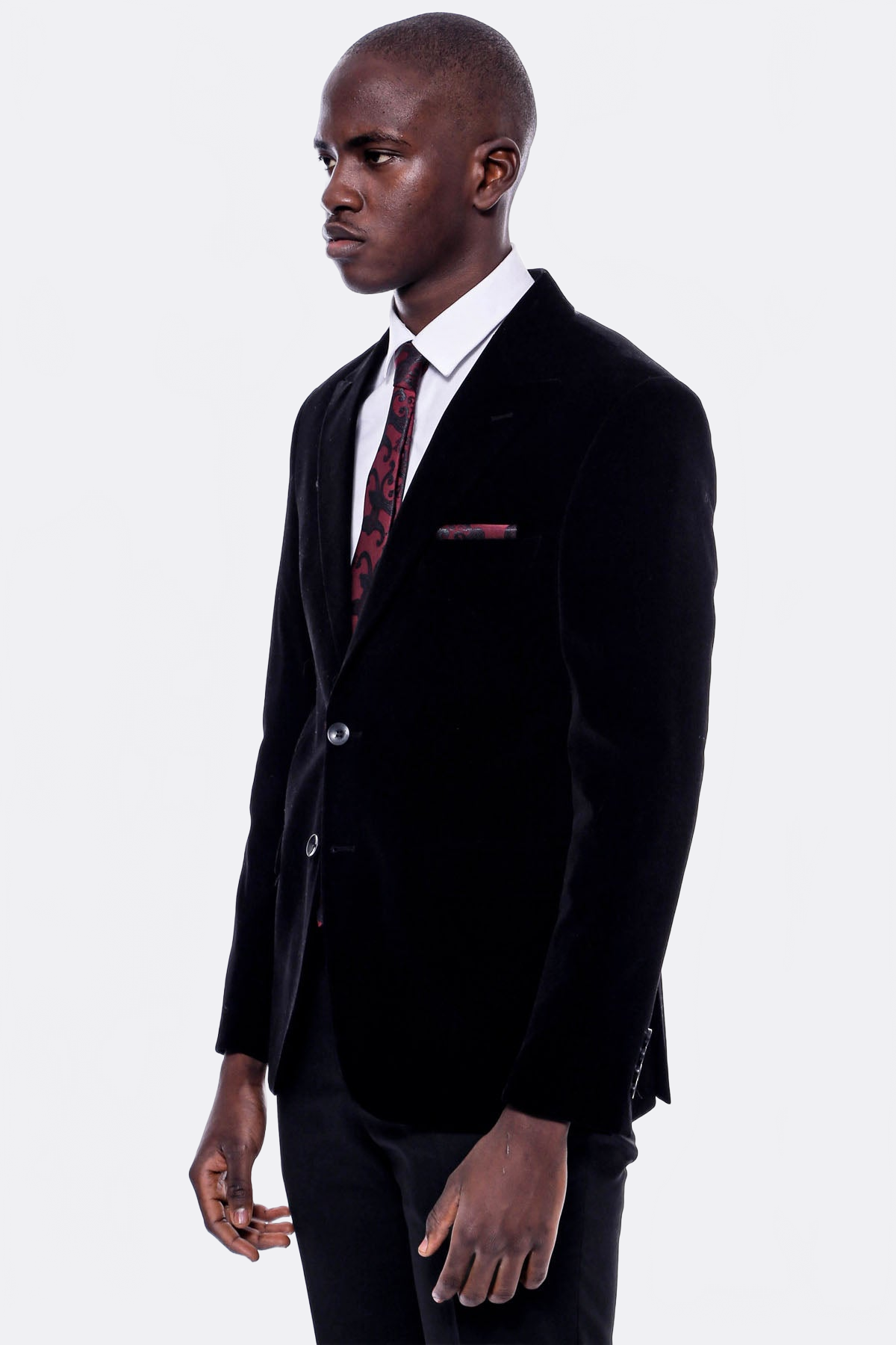 Geniş Sivri Yakalı Kadife Siyah Erkek Ceket - Wessi