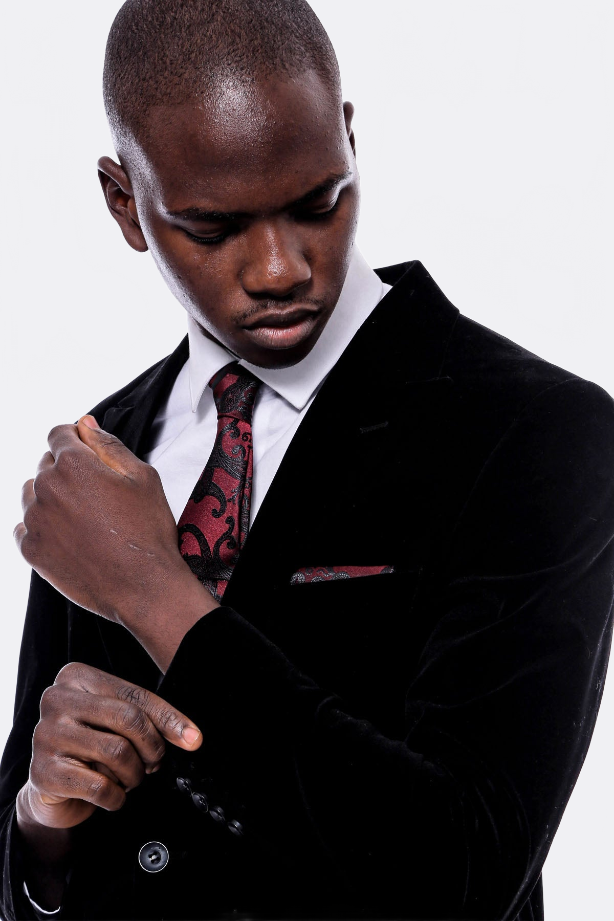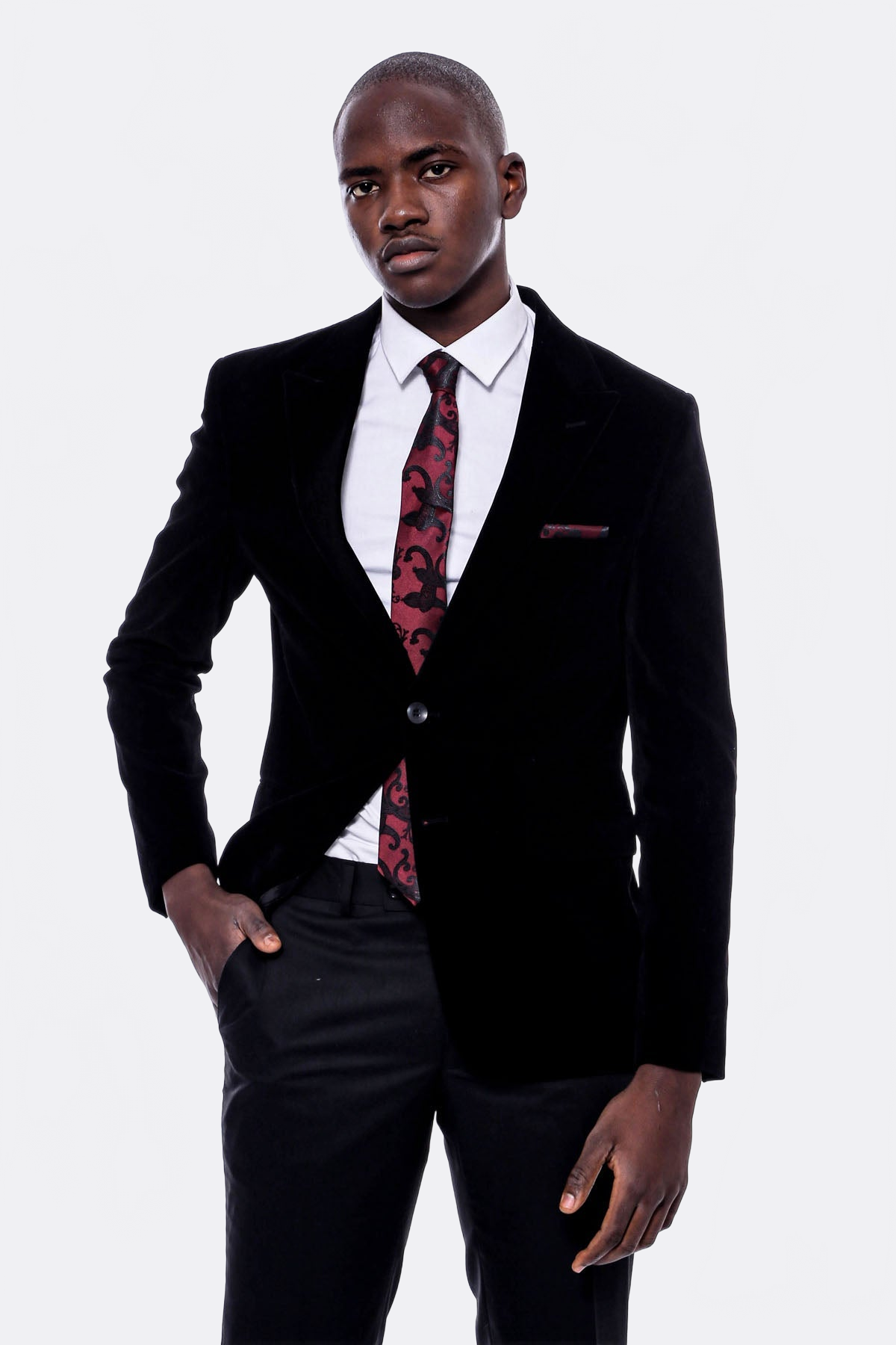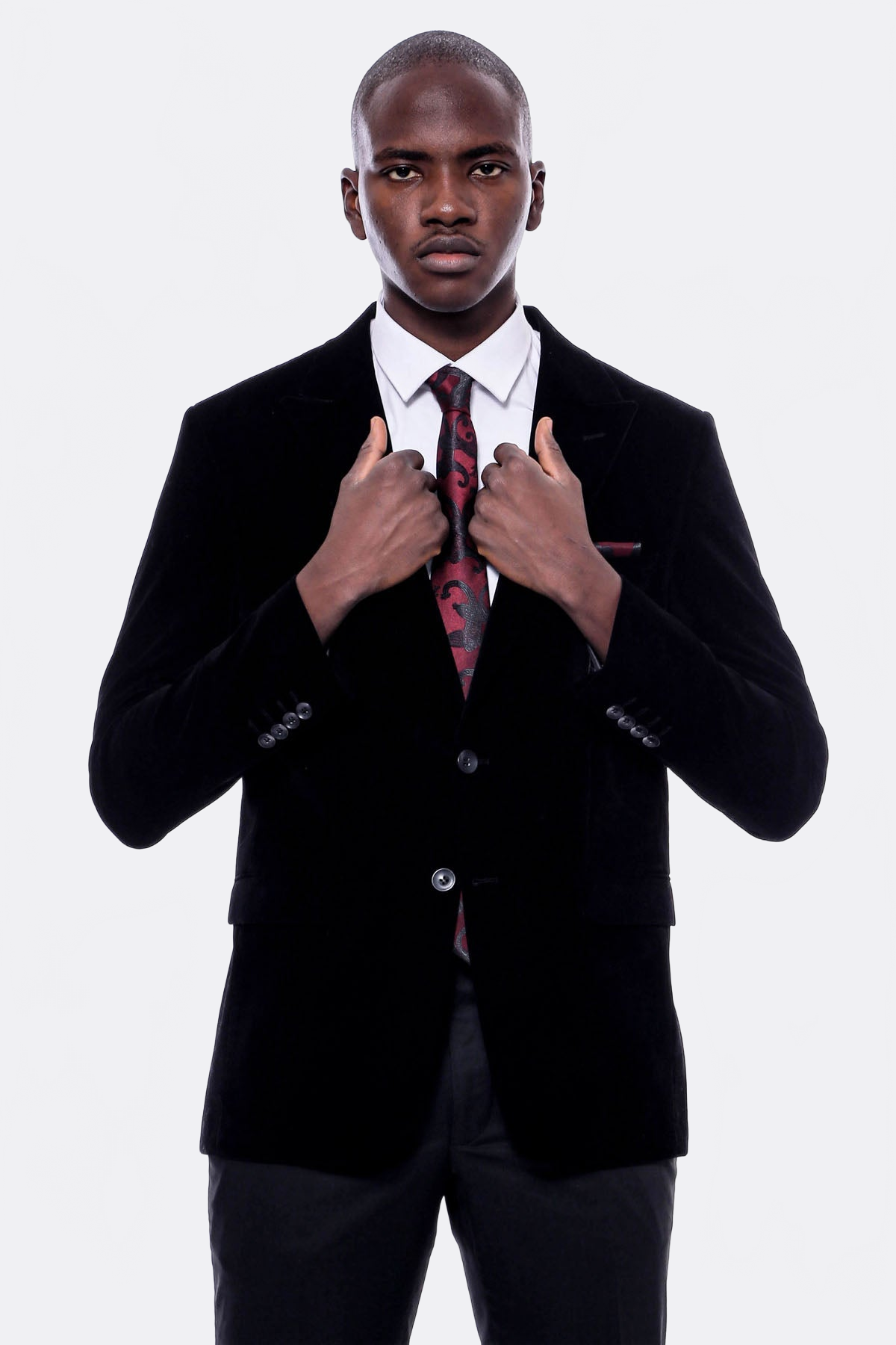 Geniş Sivri Yakalı Kadife Siyah Erkek Ceket - Wessi