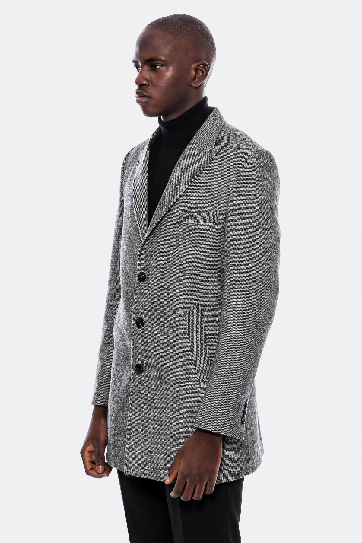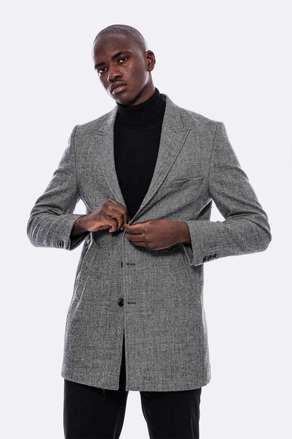 Sivri Yaka Gri Erkek Kısa Palto - Wessi