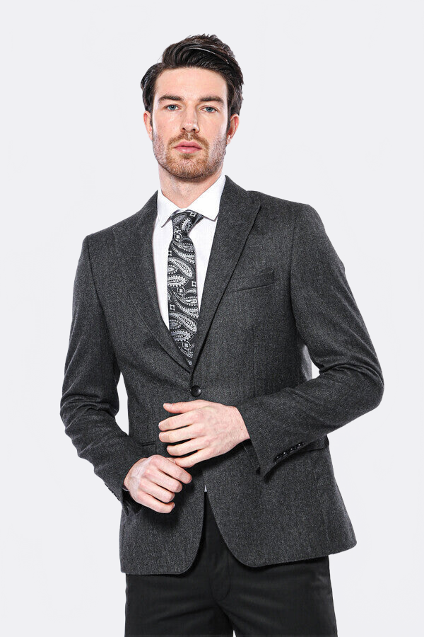 Sivri Yaka Tek Düğme Füme Slim Fit Ceket - Wessi