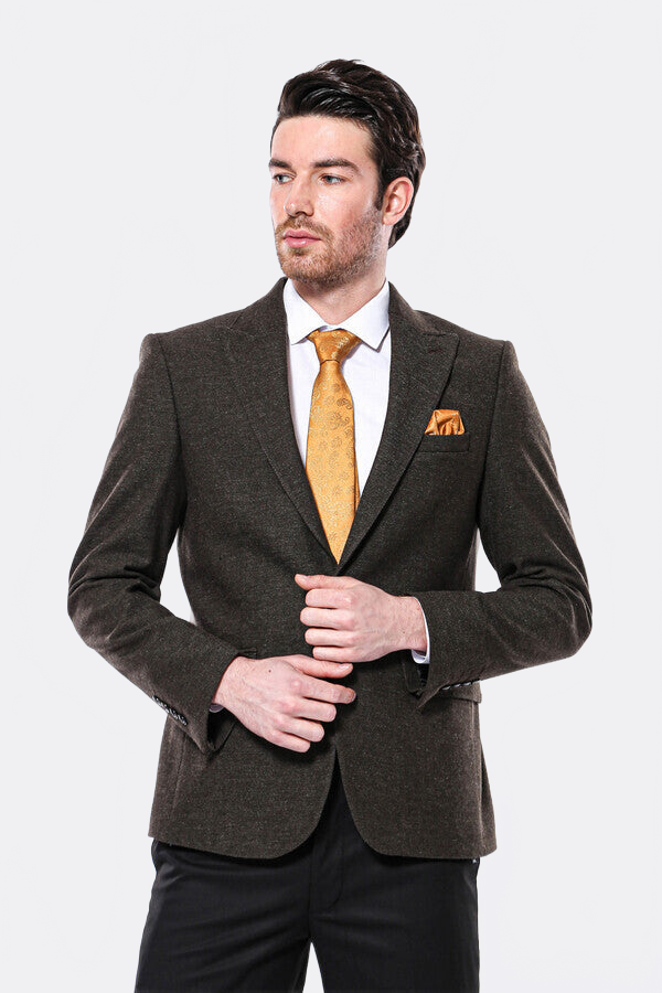 Sivri Yaka Tek Düğme Haki Slim Fit Ceket | Wessi
