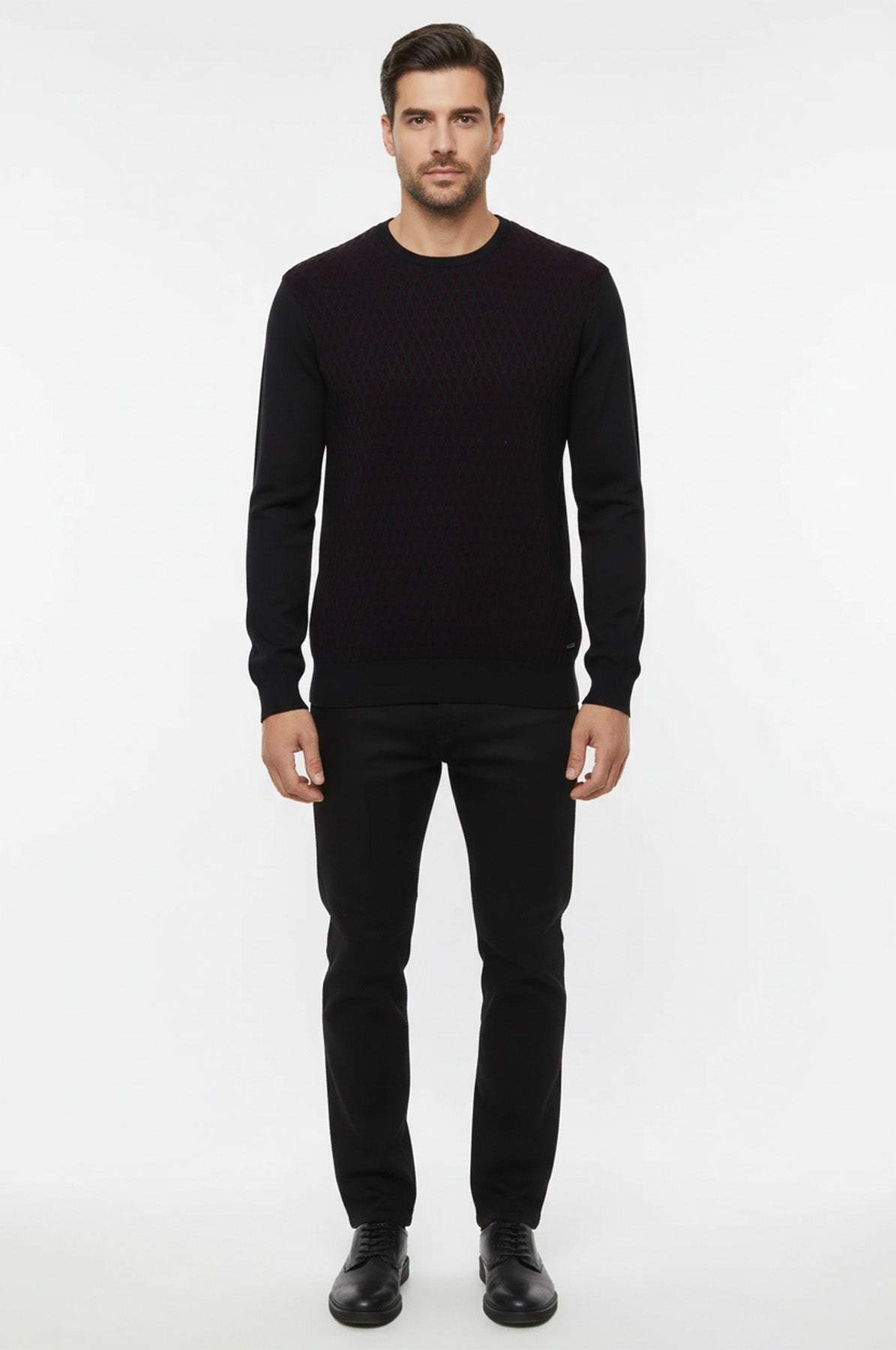 Siyah Baklava Desenli Bisiklet Yaka Kazak - Wessi