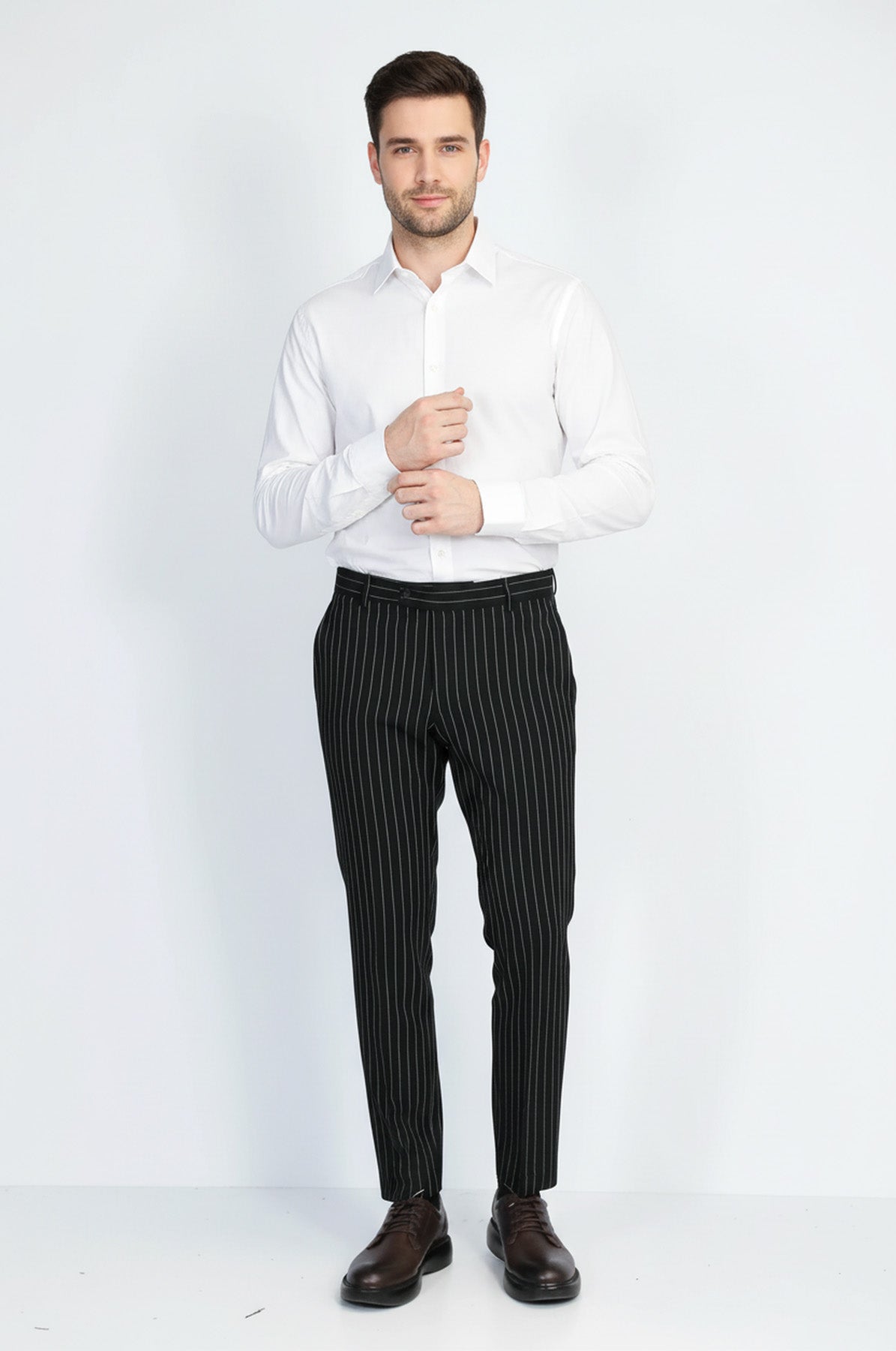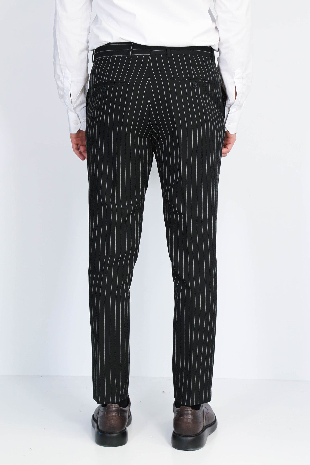 Siyah Beyaz Çizgili Slim Fit Kumaş Pantolon - Wessi