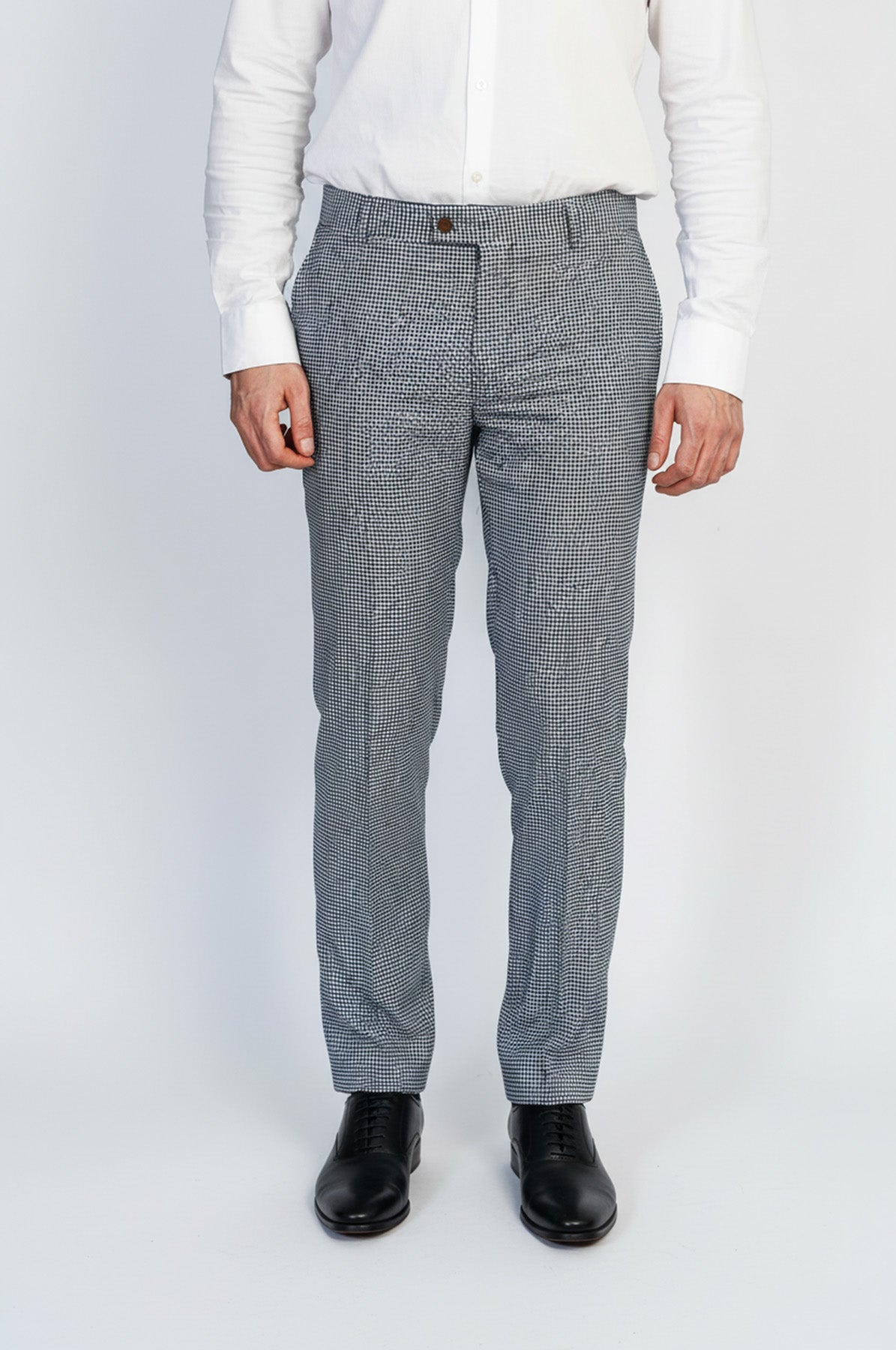 Siyah Beyaz Mikro Desenli Slim Kesim Kumaş Pantolon - Wessi