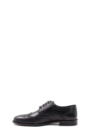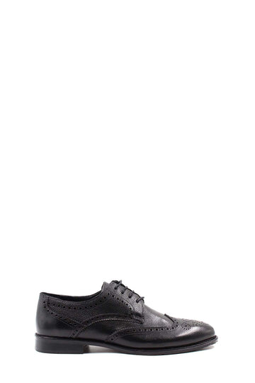 Siyah Delikli Desenli Bağcıklı Klasik Deri Ayakkabı - Wessİ