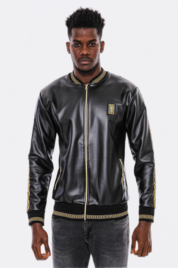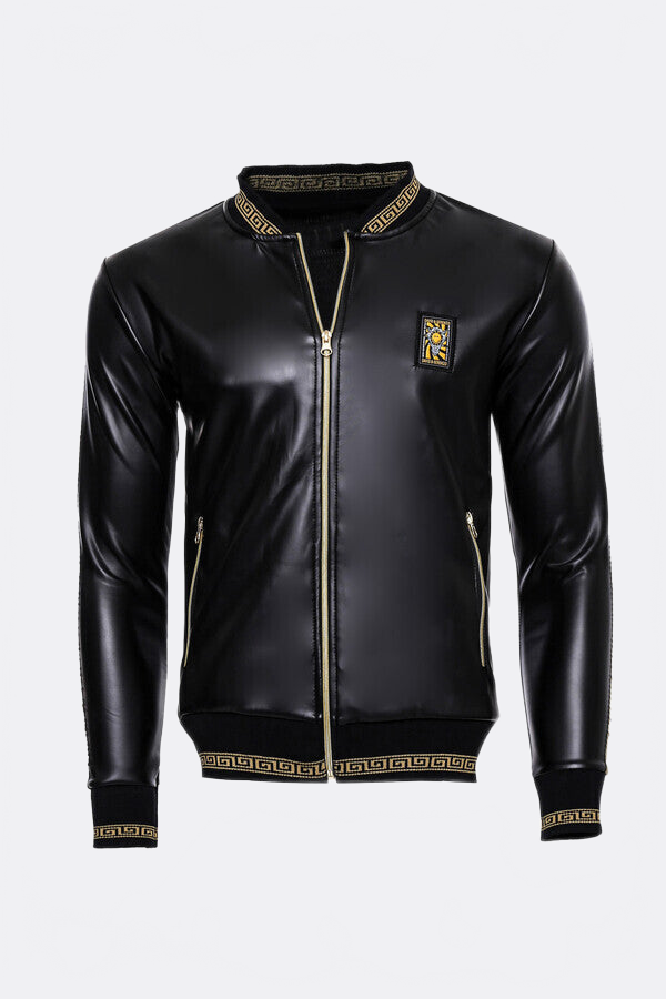 Siyah Deri Görünümlü Mevsimlik Mont - Wessi