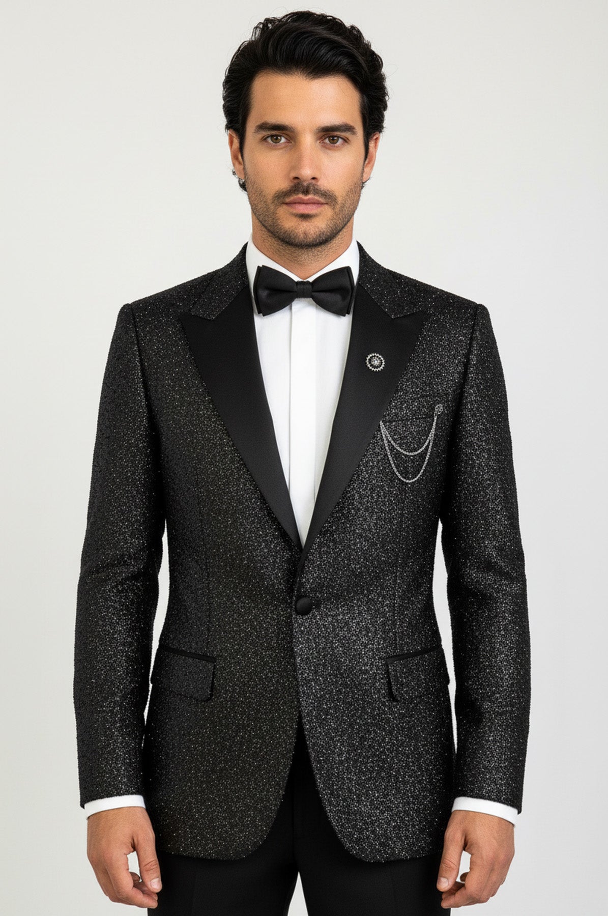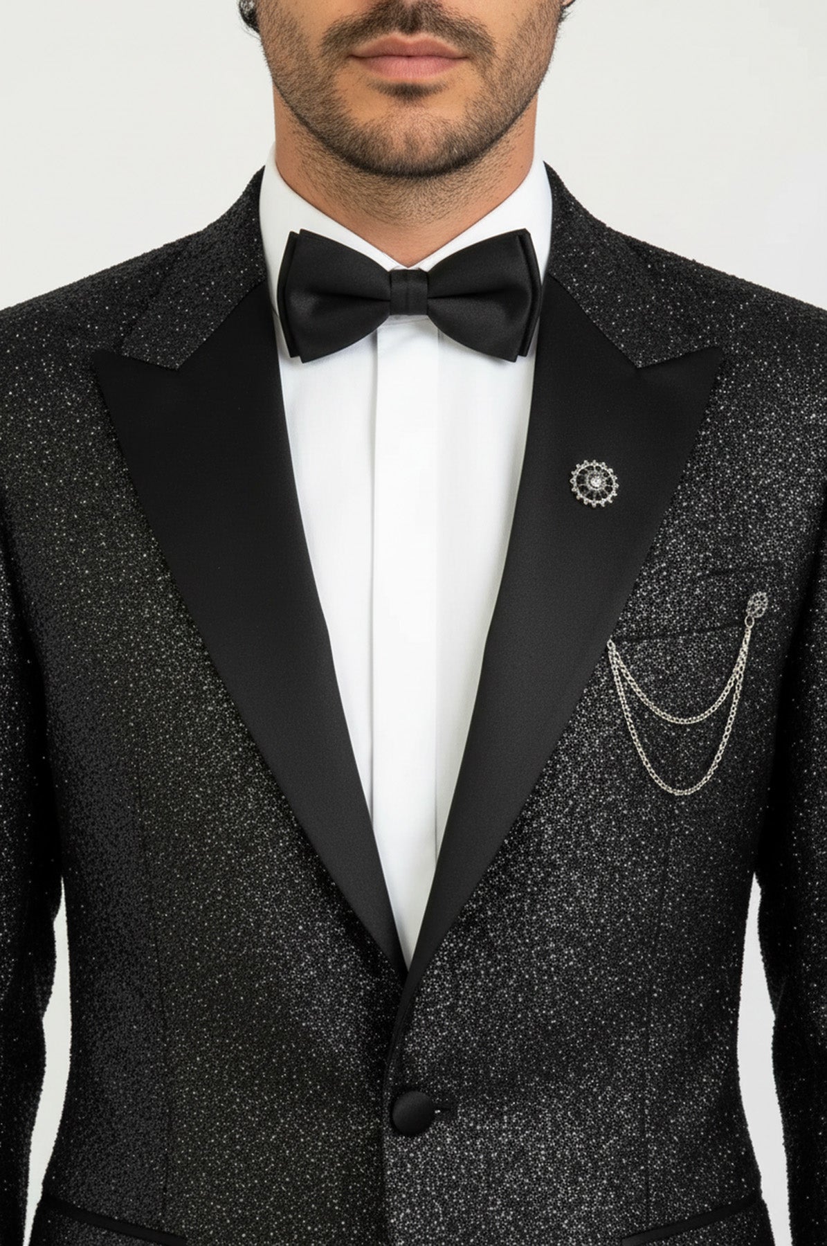 Siyah Simli Slimfit Damatlık Ceket - Wessi